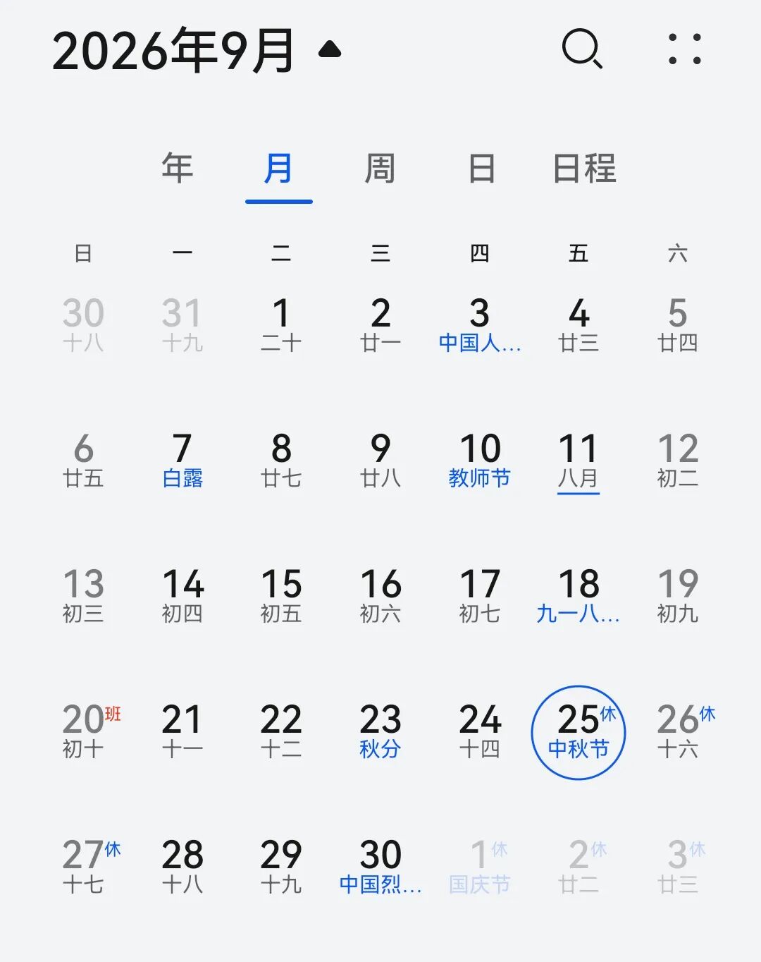 中秋节:9月25日(周五)至27日(周日)放假,共3天。