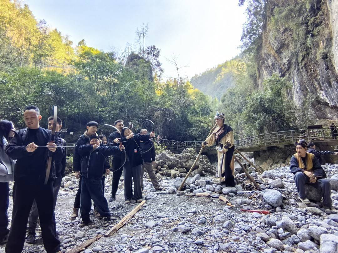 “嗷嗷嗷嗷嗷,快来打猎,射中野猪有奖励哟!”2月19日下午,在巴山大峡谷景区的桃溪谷,赵艳和她的“猎人”小伙伴们积极招呼过往游客,引导大家体验“狩猎”。