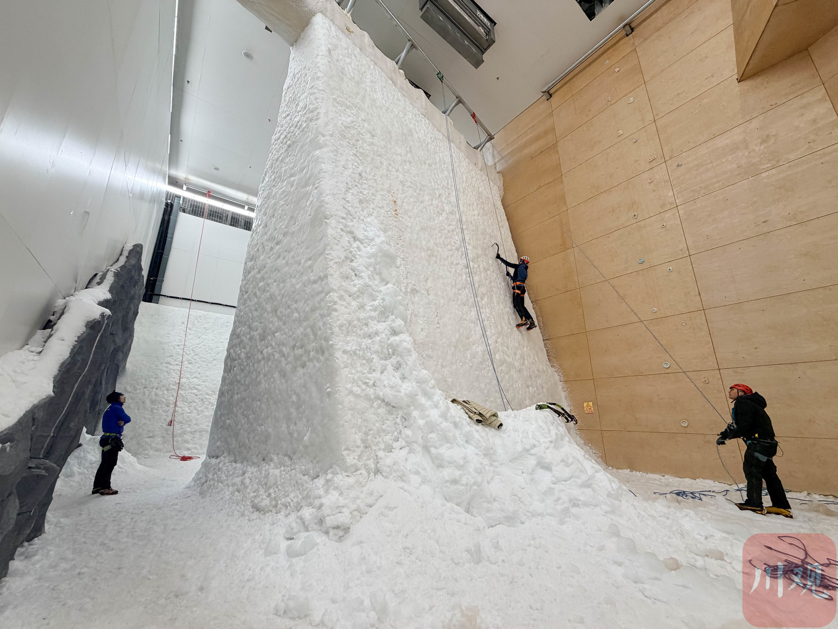 这座室内攀冰馆于2025年国庆首次亮相试营业,其间不断对场馆设施进行全方位优化升级。今年1月正式对外营业,填补了室内专业攀冰场馆的空白。