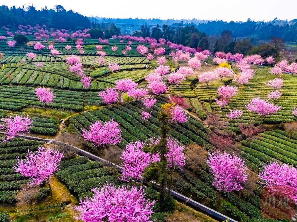 茶山一片葱绿,樱花点缀其中……2月19日,正月初三,走进雅安市名山区新店镇,茶山间的樱花园迎来绚烂花期。翠绿茶山与粉色樱花相互映衬,形成独特景观。吸引了众多游客前来打卡,成为当地新春旅游的一大亮点。