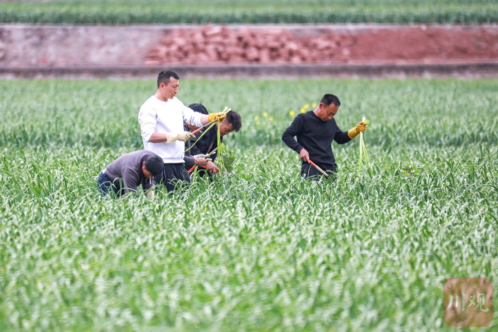 2月19日,正月初三,春节的喜庆气息还弥漫在空气中。走进雅安市汉源县九襄、前域等乡镇的田间地头,一阵阵浓烈的蒜香味扑鼻而来,随处可见正在进行蒜薹收割的蒜农。抽薹、捆扎、装车……马年新春第一波丰收——蒜薹“增收曲”奏响。