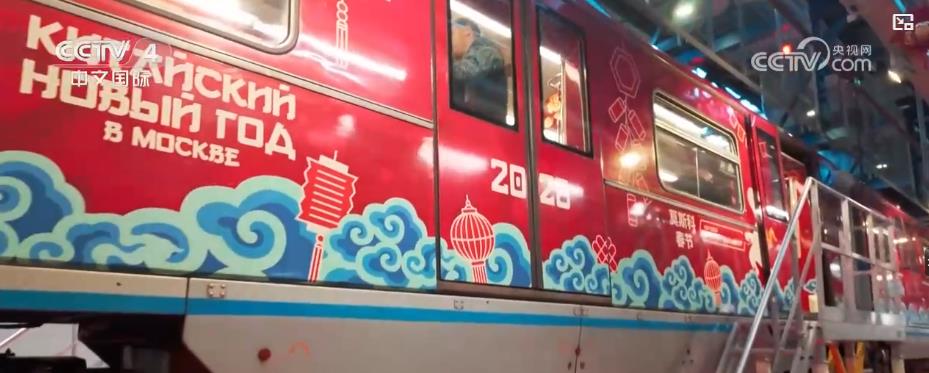俄罗斯莫斯科地铁17日举行中国春节主题列车发车仪式。列车车身以红色为主,绘有奔马、祥云等装饰,车厢内还有以春节为主题的中国古诗词及其俄文译文,让当地居民和游客深入了解中国春节传统。