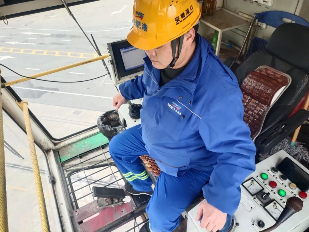 清晨7点,合肥港南淝河港区,门机司机郭俊松爬上20多米高的驾驶室。他推动操纵杆,吊具稳稳抓起一卷30吨重的冷轧钢,精准移向货车。这是他在港口工作的第7年,也是第7次在岗位上过春节。