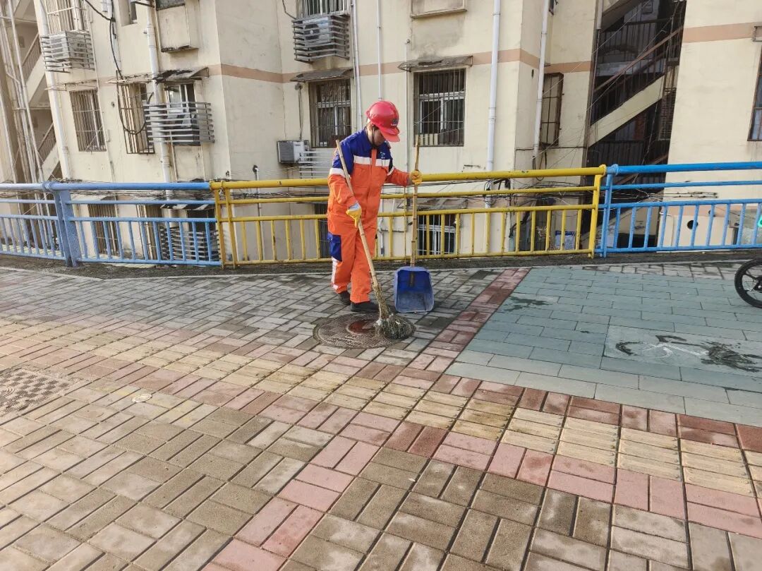 晨光渐亮。那一抹橙色身影依然忙碌在大街小巷,用扫帚守护着节日的整洁。