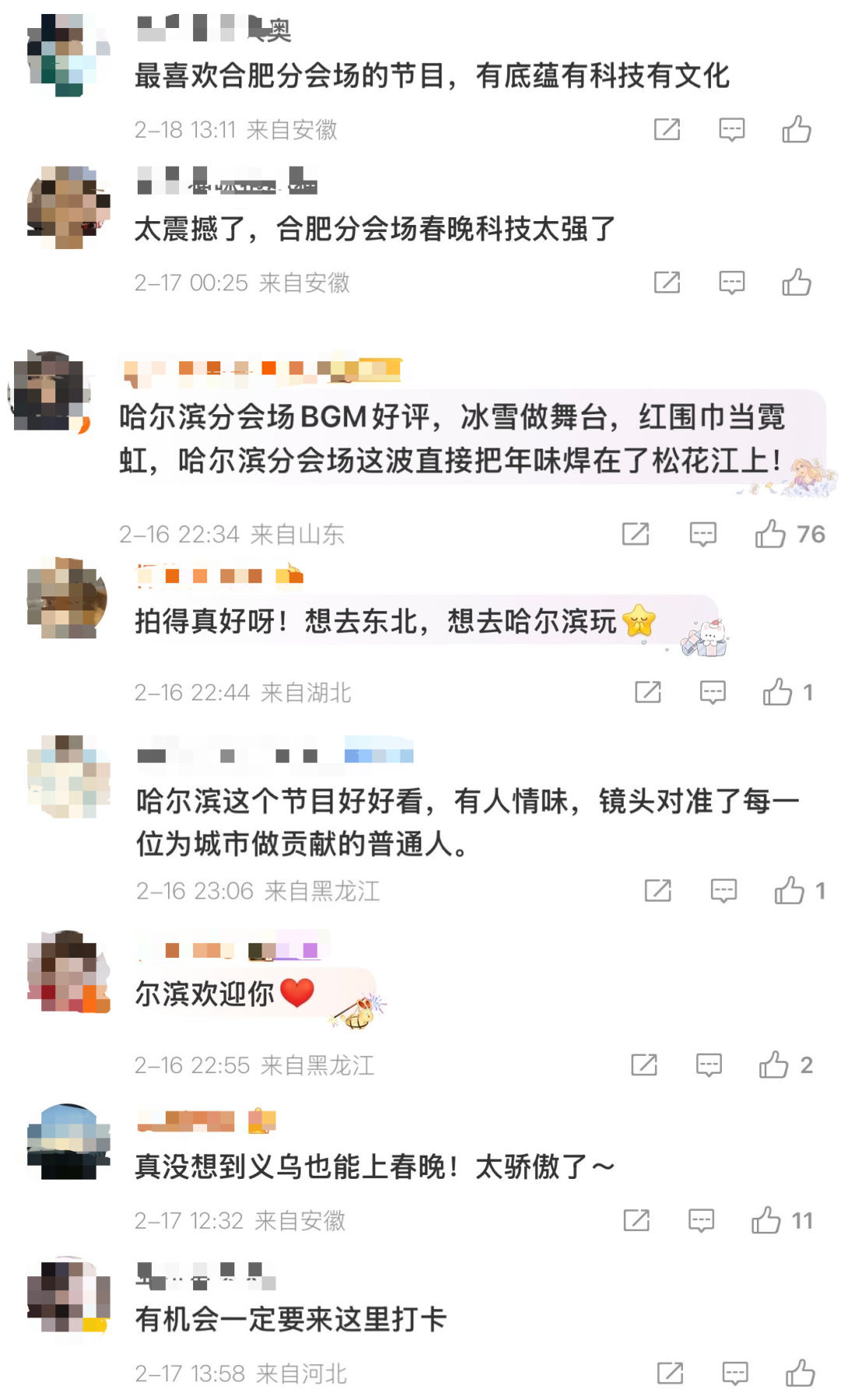 从哈尔滨“热辣滚烫”的冰雪大世界到义乌的“春晚客厅”;从宜宾打造的“12个春晚录制地”到合肥的“鱼灯巡游盛景”。春晚镜头像一束追光,点亮了这些城市隐藏的魅力。人们不再只满足于观看,更想亲身走进那场盛大的晚会,触摸荧屏里的风景。