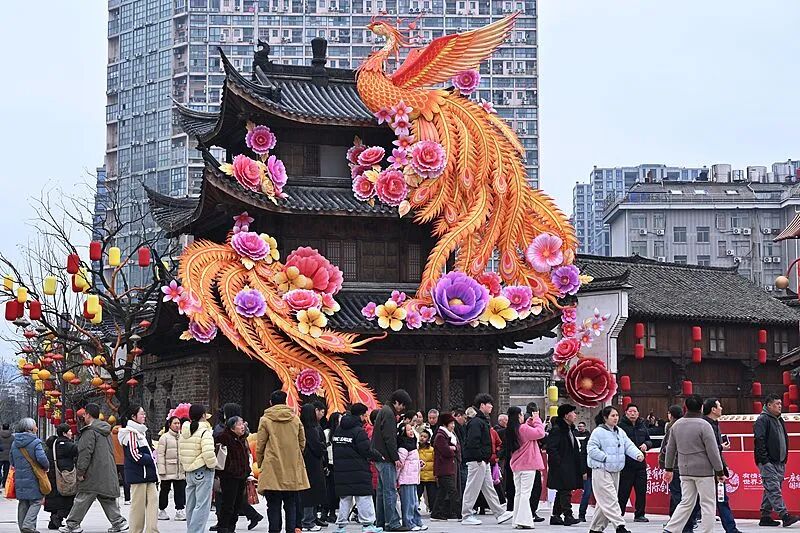 走进春晚分会场取景地之一的宜宾合江街,行道树上缀满串串红灯笼,各式新春元素将整条古街装扮得喜气洋洋。围绕马年生肖打造的12个特色打卡点,成为游客互动体验的热门选择。大年初一,宜宾各大景区、城市地标迎来客流高峰,文旅市场迎来“开门红”。