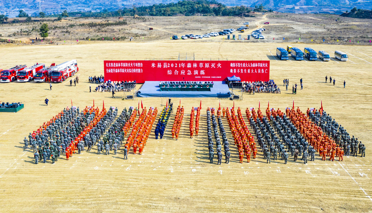 据了解,此次演练共有米易县森林专业扑火队、普威林业局森林专业扑火队、各乡镇森林专业扑火分队、半专业扑火队、米易消防救援大队等25支队伍1100余人参加,先后出动了消防水车、无人机、风水灭火机等灭火装备。