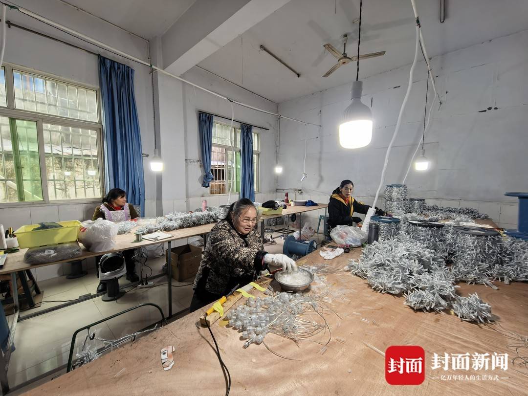 工坊创办人李国林今年50岁,是土生土长的长赤人,西南农业大学毕业后曾在浙江打拼,是一家雨伞工厂的股东,工厂年产值超5000万元。2024年9月,在南江县政府的邀请下,他带着技术、订单和资金返乡创业,把浙江的成熟产业链“搬”回故乡。