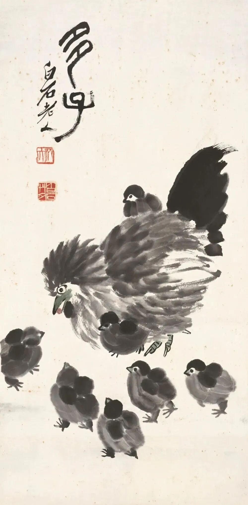 展览总策划、北京画院院长吴洪亮介绍,《十二属图》最动人之处在于浓郁的生活气息、鲜活的童真情趣与鲜明的独创精神。白石老人“以书入画”,笔墨简练却力道千钧;笔下动物皆源自生活观察,小鸡稚拙、小猪憨态、家犬温驯,即便是非日常所见的龙,也以“神龙见首不见尾”的艺术处理方式赋予其独特的艺术生命力,完美践行了其“不喜平庸、不厌雷同”的艺术旨趣。
