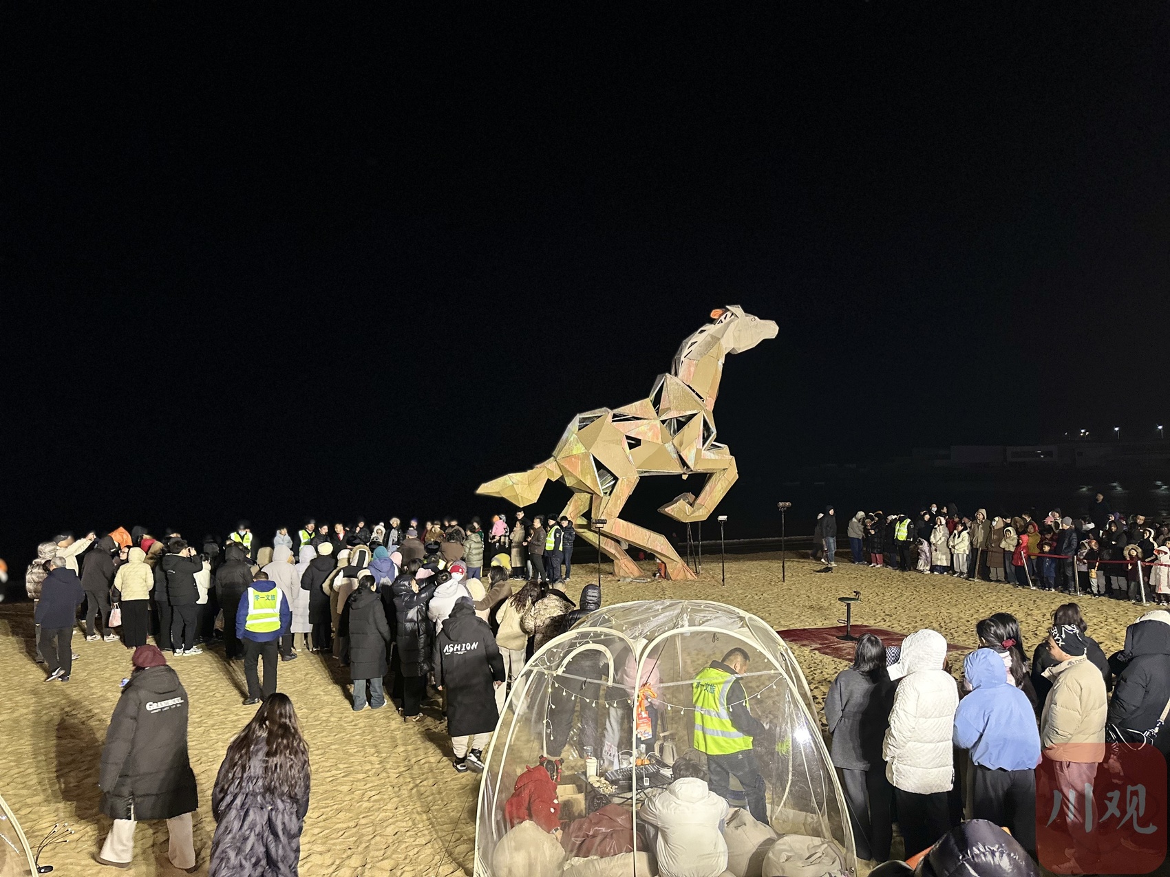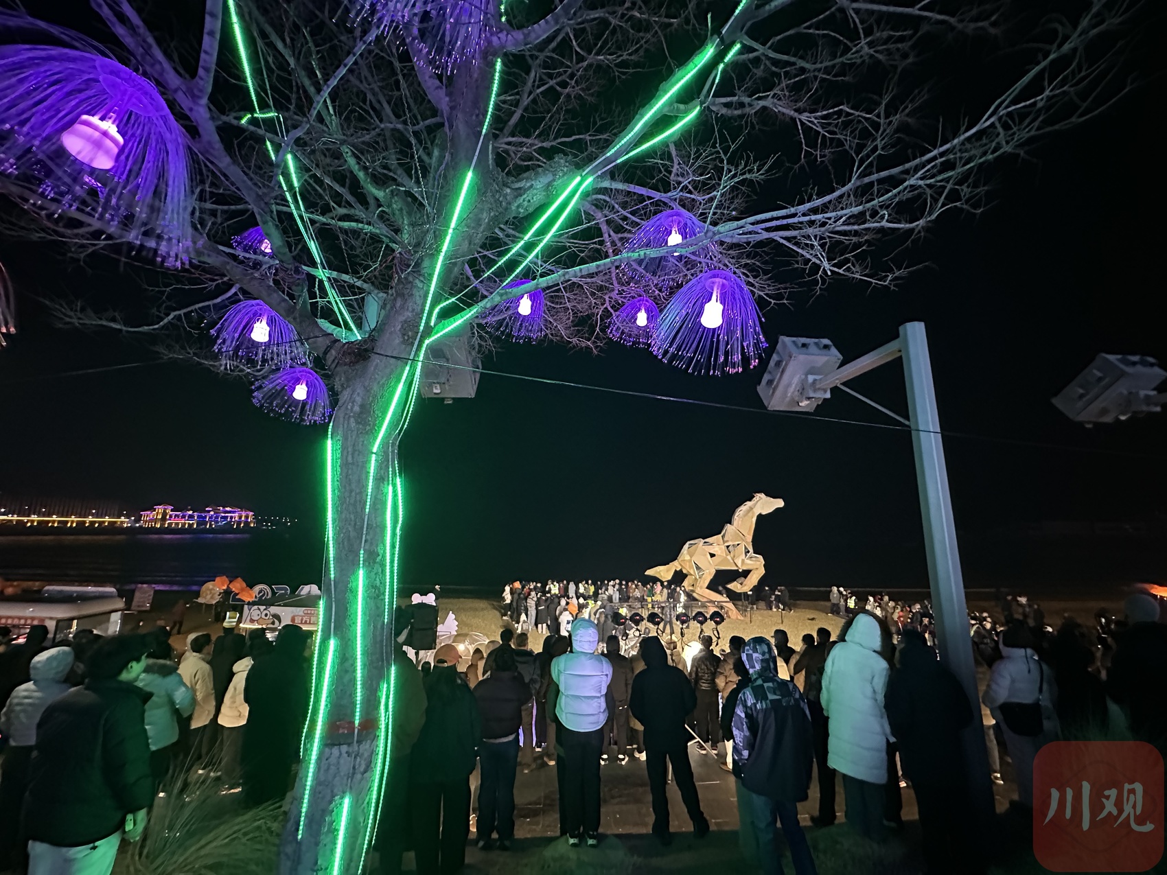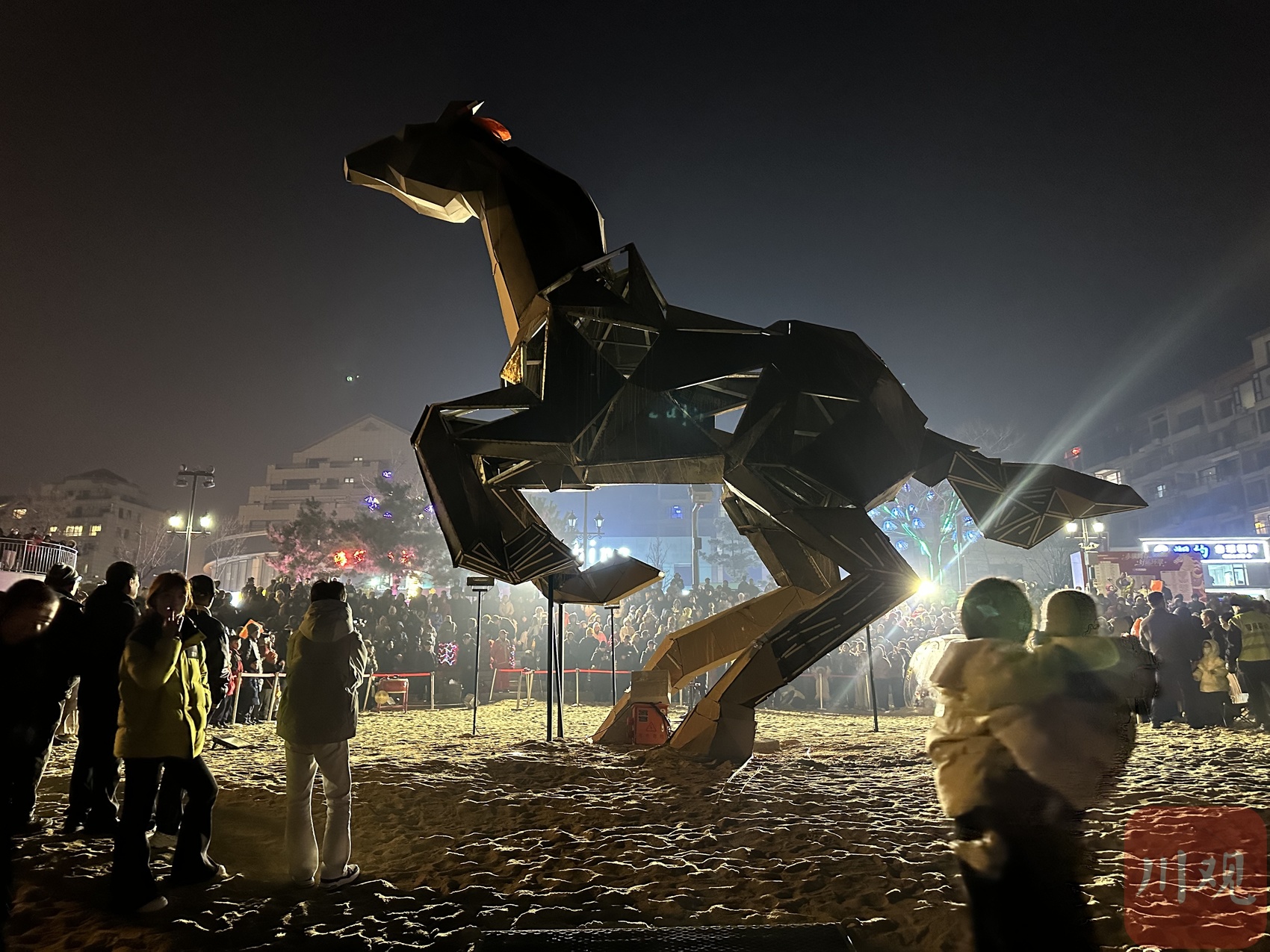 2月20日晚,以“赤骥腾春”为主题的新春活动在山东威海国家AAAA级旅游景区半月湾热烈上演,为市民和游客带来一场传统文化与现代科技交融的视觉盛宴。