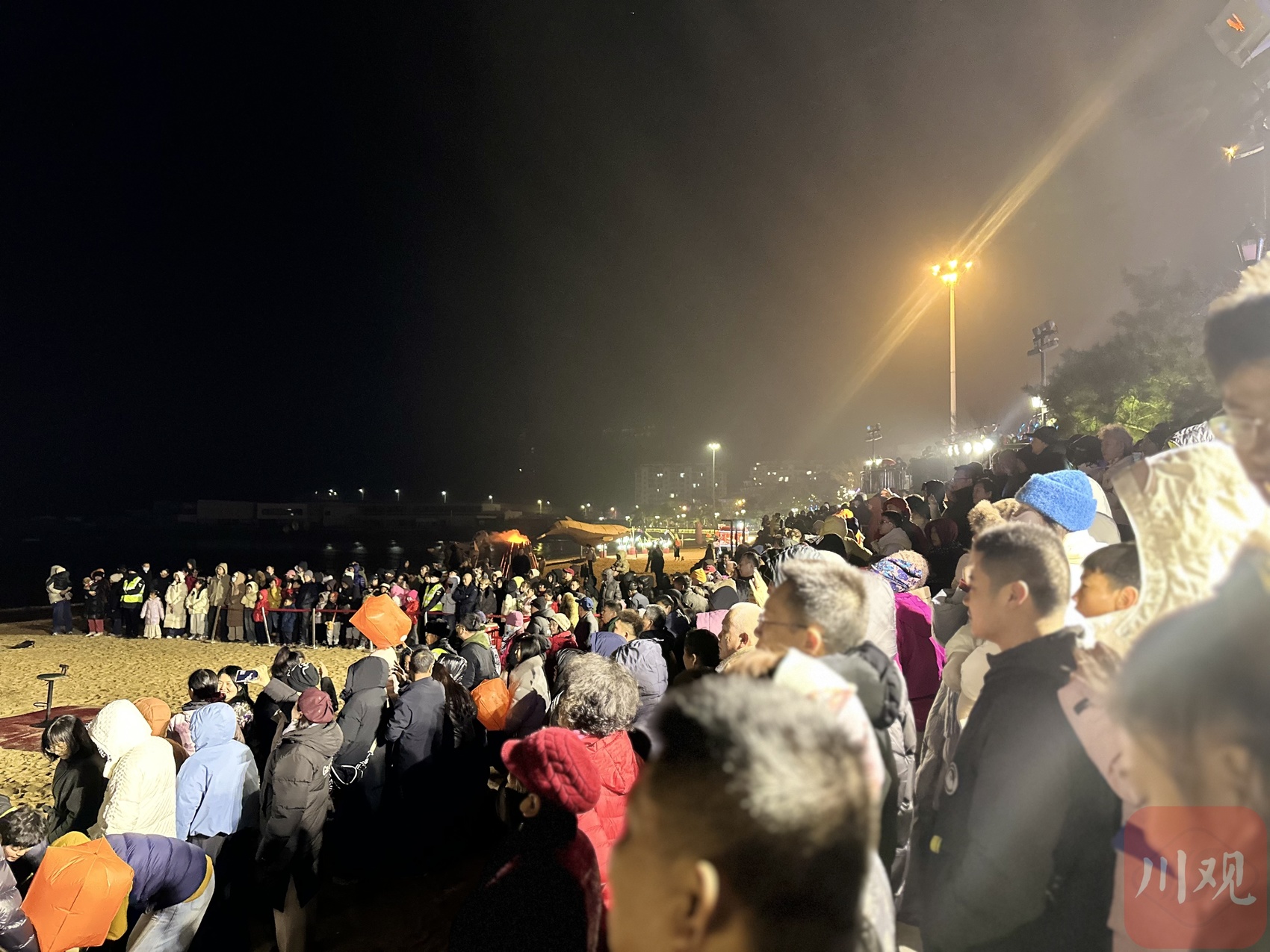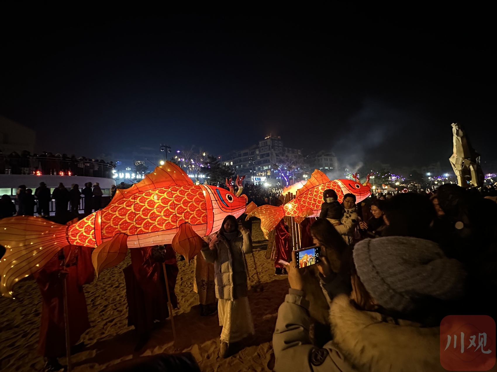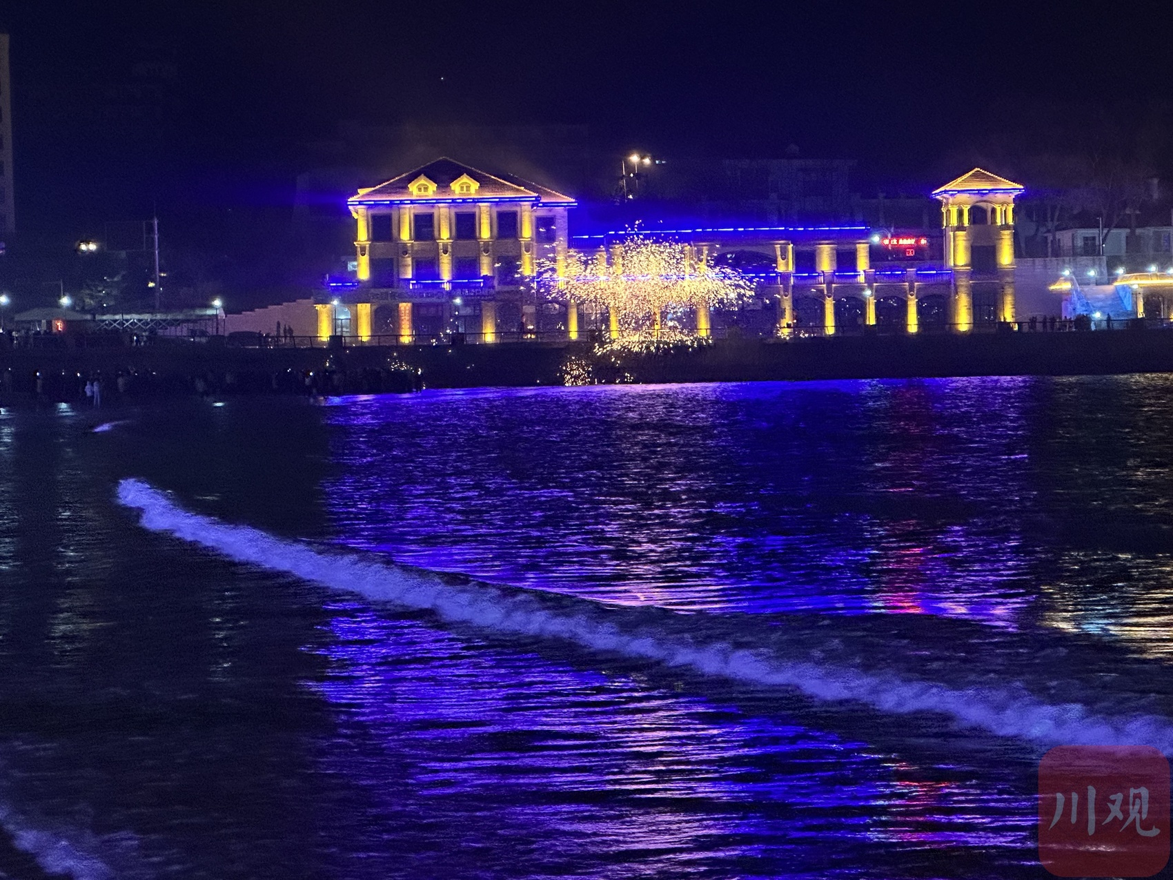 2026年2月20日晚,山东威海国家4A级旅游景区半月湾精彩的节目吸引大批游客前来观赏。