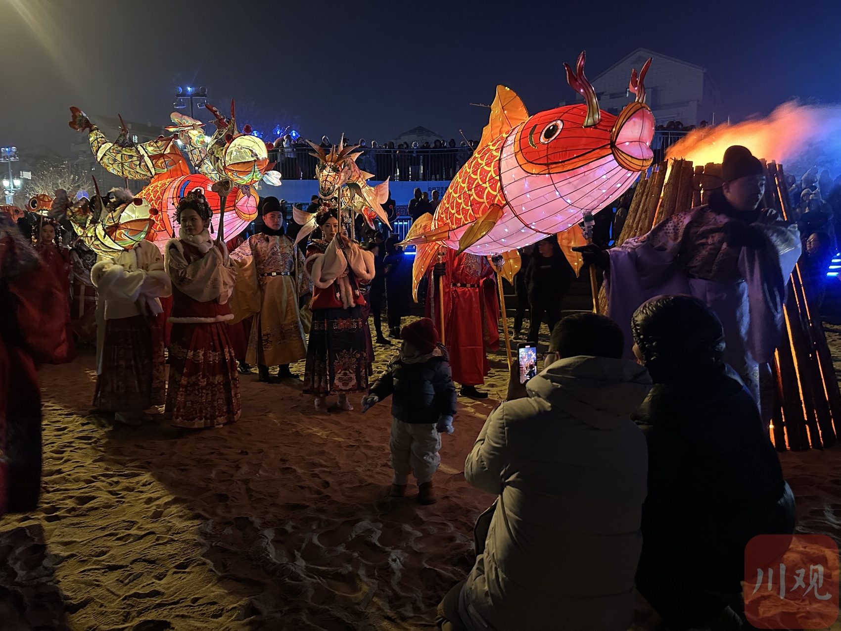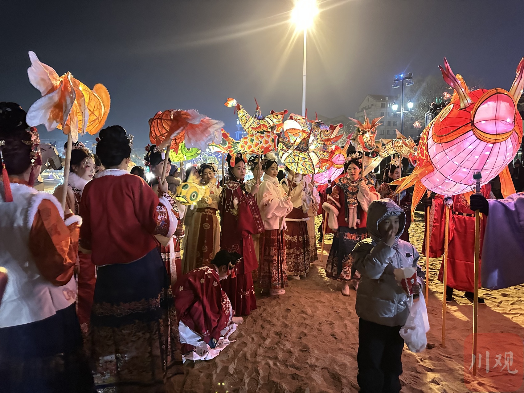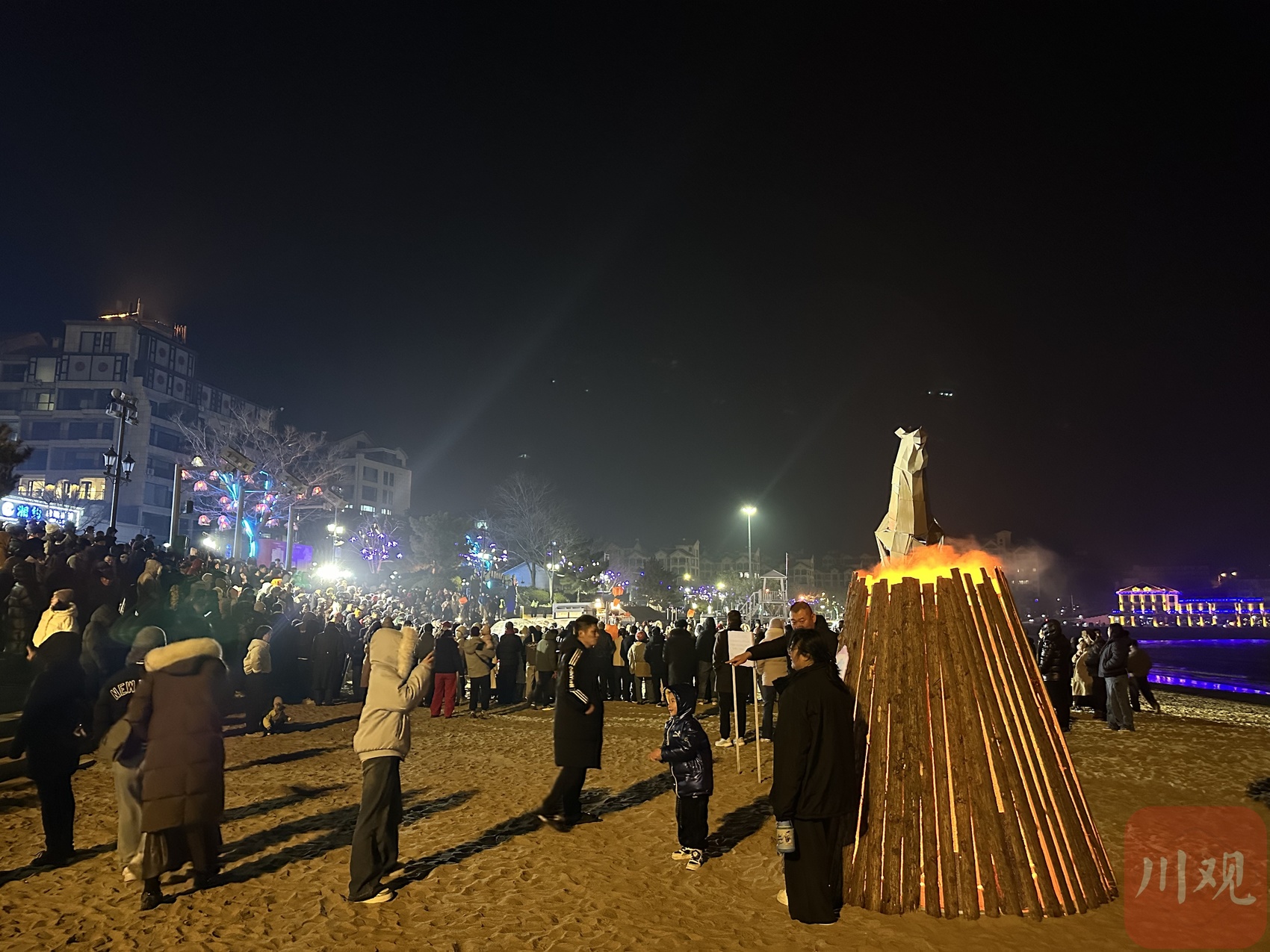 2026年2月20日晚,山东威海国家4A级旅游景区半月湾精彩的节目吸引大批游客前来观赏。