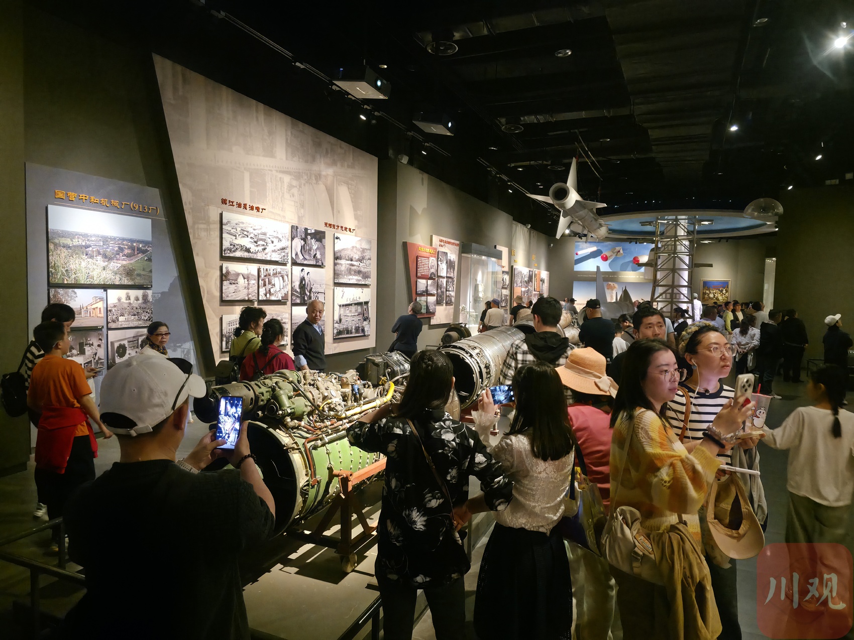 2月20日,攀枝花中国三线建设博物馆,游客打卡航空发动机。