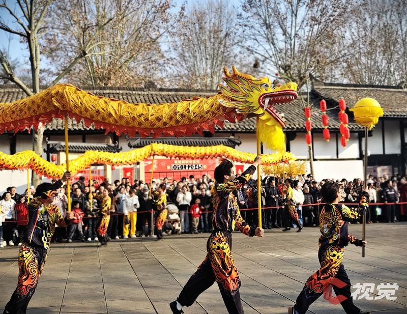 2月21日,南充市阆中古城阳光明媚,贡院广场舞龙表演吸引了游客打卡拍照,乐享春节假日。C视觉签约摄影师 梁德 摄