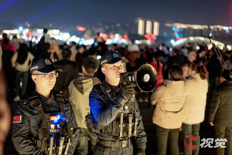 2月20日,绵阳市公安局游仙区分局民辅警在灯会现场,游客集中地段值守,守护游客平安。C视觉签约摄影师 唐超 摄