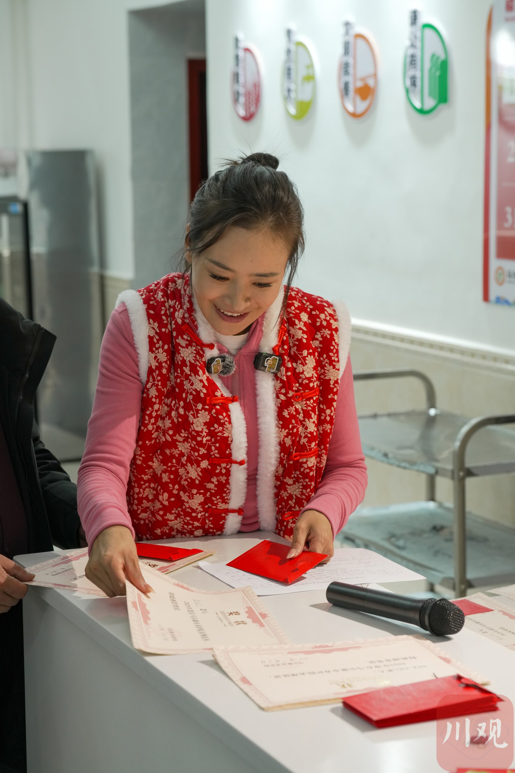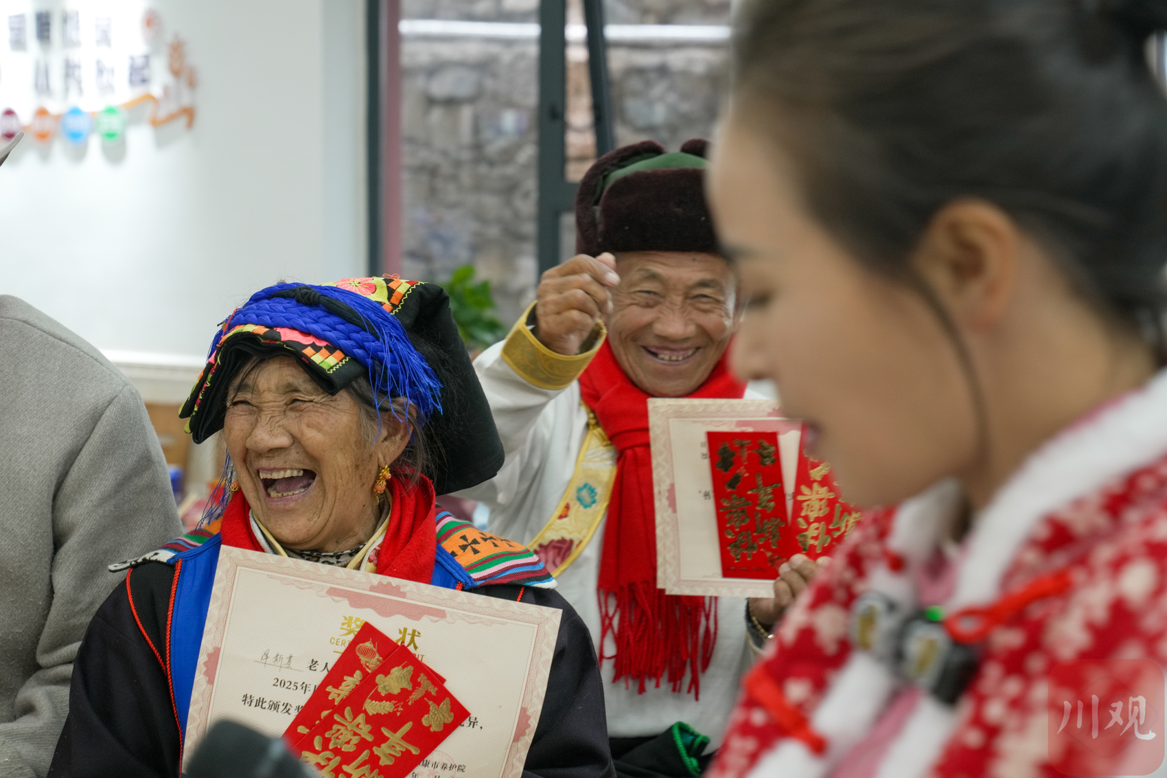 除了趣味活动,一场简短而隆重的表彰环节更添温情。格西王姆为过去一年内坚持参与集体学习、体育锻炼和各类文娱活动的老人,亲手送上奖状和红包,以此鼓励老人们保持积极乐观的心态,丰富精神生活。“这些老人就像我的‘孩子们’,看着他们精神越来越好,我就觉得一切都值得。”格西王姆笑着说。