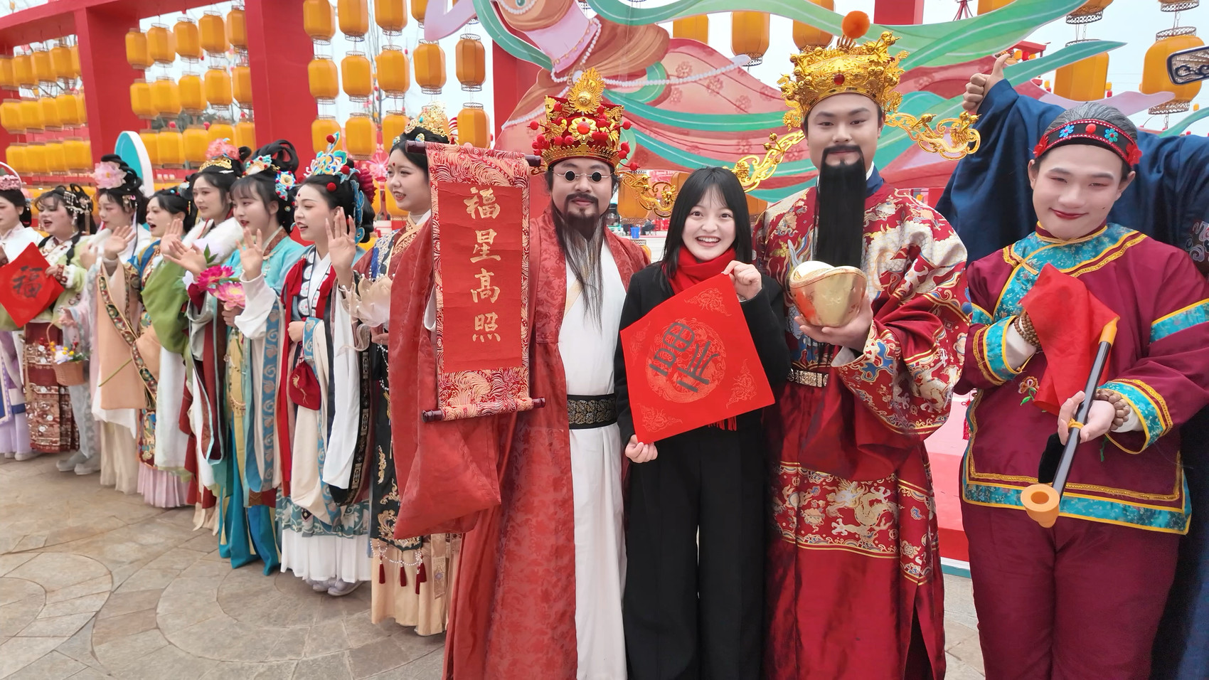 “听说有英歌舞表演,特意早点来!”正月初二上午九点,绵阳市仙海旅游度假区内,风还带着些许寒意,仙海广场方向传来的锣鼓声却很响亮。度假区位于仙海区沉抗镇,住在附近的张秀英牵着孙女快步前行,路边汉服NPC与游客热情互动、拍照,张秀英停下脚步,帮孙女理好围巾,笑着感叹:“这才是过年该有的样子。”