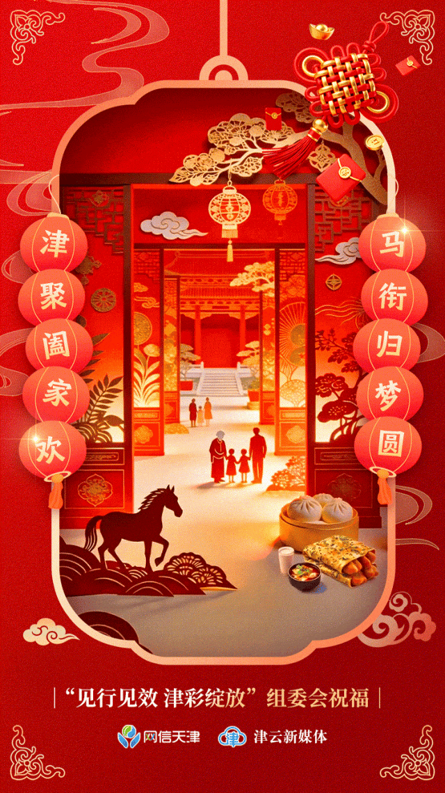大年初五,津门古文化街庙会闹翻天!红灯笼挂满街巷,画糖人的摊位前挤满了人,迎财神的锣鼓声震耳欲聋。骏马衔着团圆美梦而来,阖家欢聚吃捞面,笑声漫过海河两岸。“见行见效 津彩绽放”组委会与津云新媒体祝您:财源滚滚,团圆美满,马年财运福运双丰收!