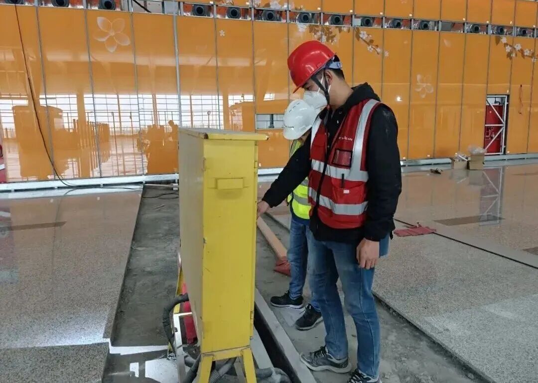 智慧海关及边检设施设备项目现场管理人员正检查设备