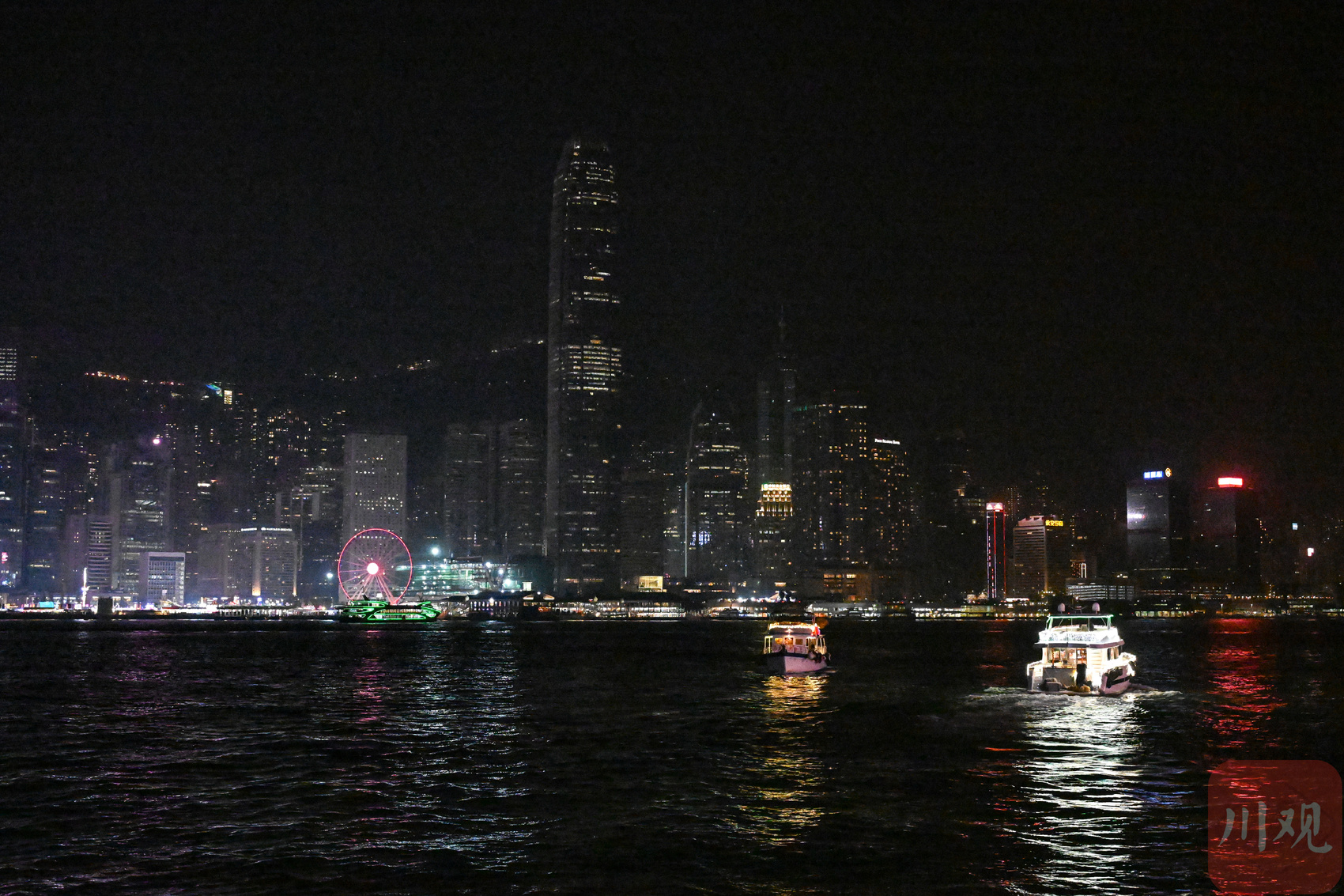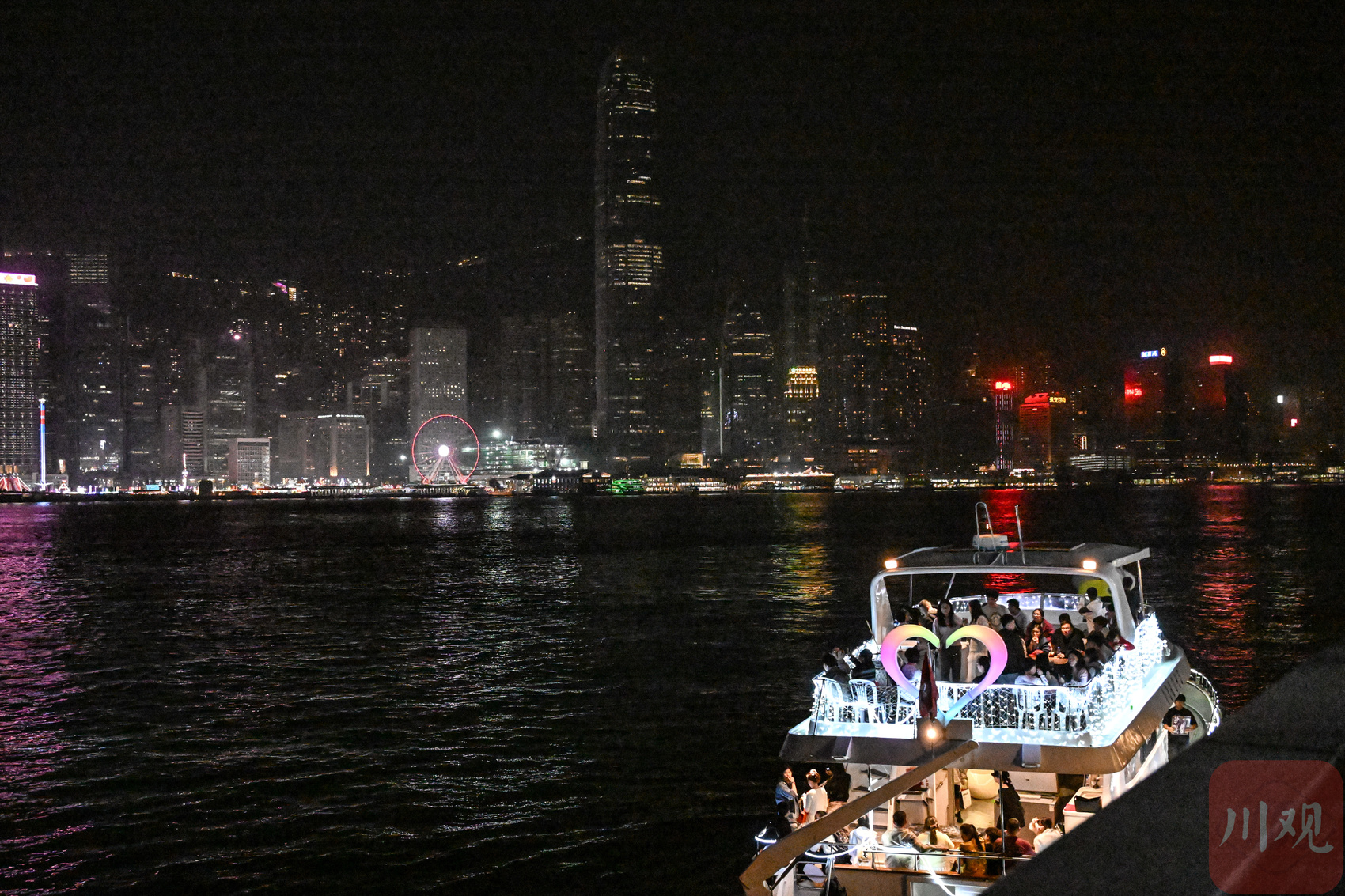 2026年2月20日,香港夜景璀璨,吸引大批游客坐船乐游维多利亚港。