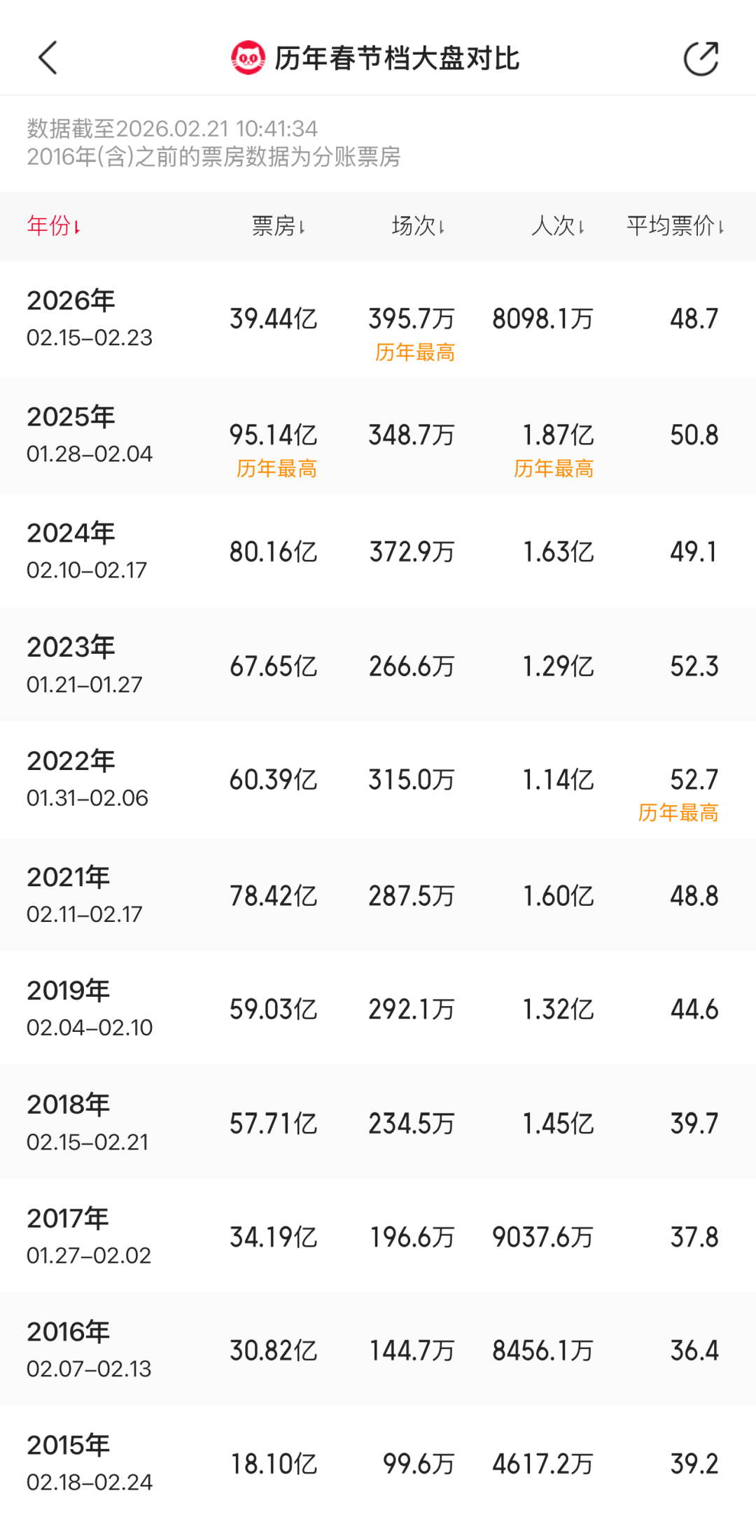 据猫眼专业版数据,2026年春节档总场次超395.7万,刷新中国影史春节档总场次纪录。