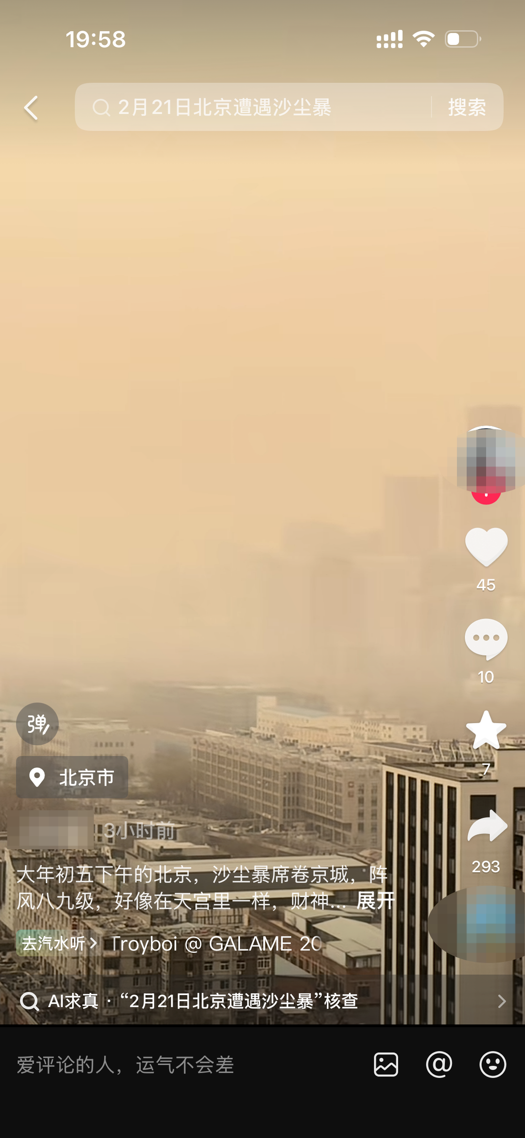 ▲北京网友发布的沙尘暴视频