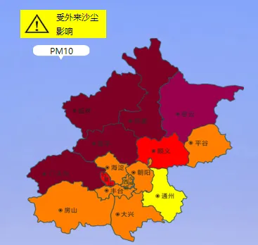 据了解,受外来沙尘传输影响,截至16时,北京全市实时空气质量指数为258,已达重度污染水平,首要污染物为PM10。延庆、怀柔、昌平、门头沟等西北部地区已达严重污染。根据预测,今天下午至夜间,北京市PM10峰值浓度可达到500微克/立方米以上的严重污染水平。