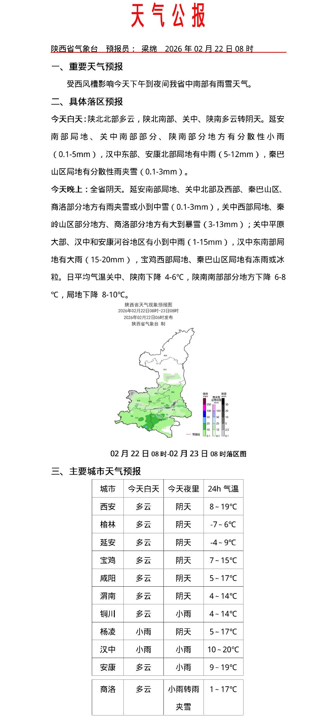 西安最新天气预报(22日):