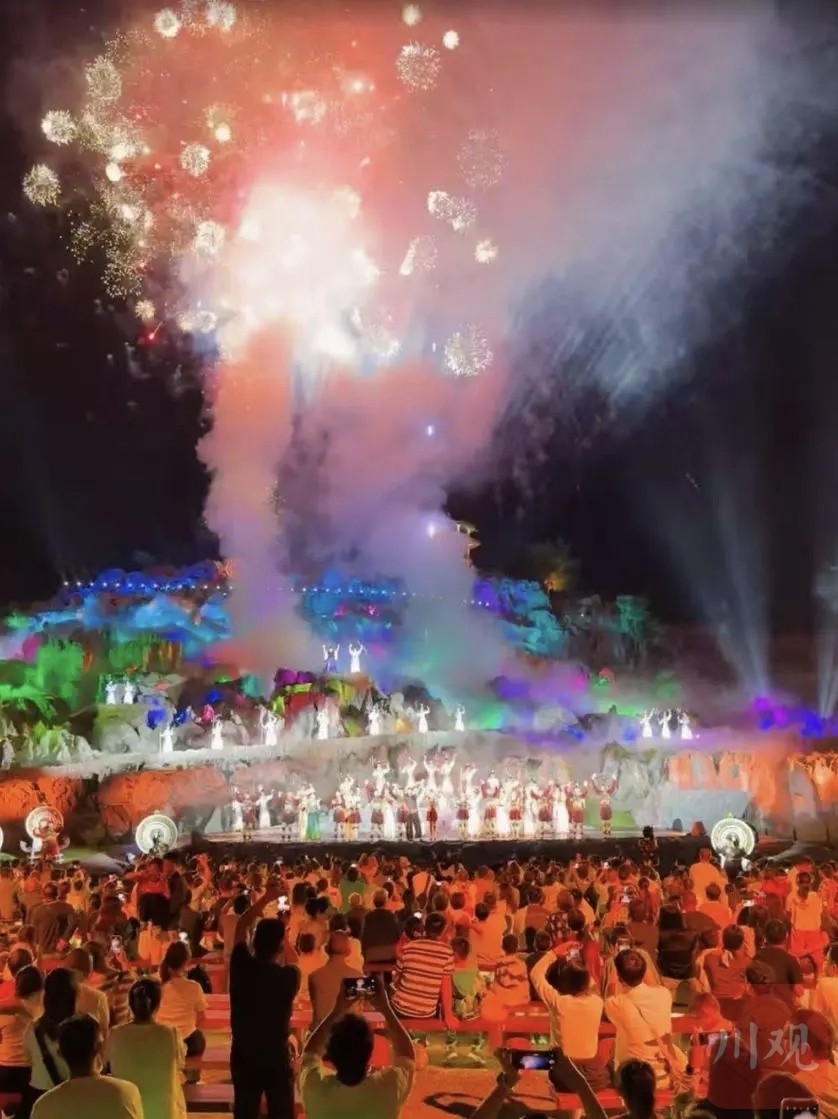 作为春晚打卡点之一的兴文石海,同样火出了圈。这里是世界地质公园,天坑、石海、溶洞等自然奇景在这里交织。春节期间,景区以“古僰迎春·潮玩石海”为主题,将非遗与地质奇景深度融合。