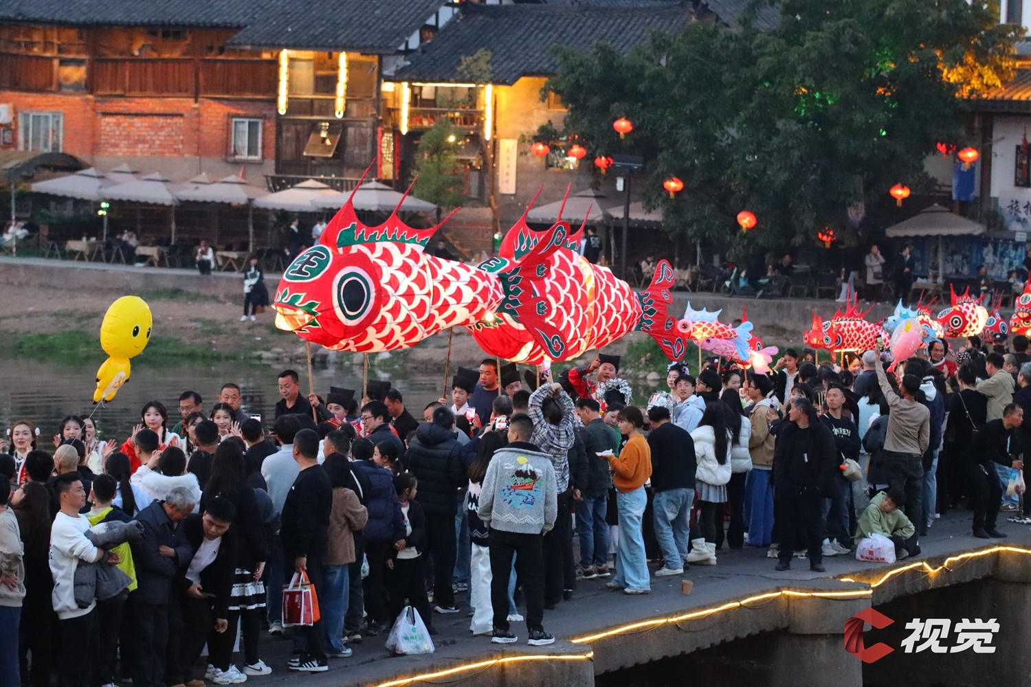 2月21日,乐山市苏稽古镇内,花灯巡游活动吸引众多市民游客围观。C视觉签约摄影师 杨飞 摄