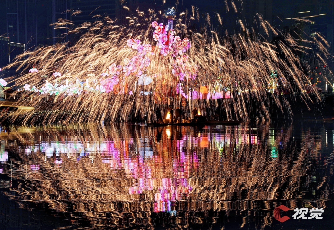 2月21日晚,崇州市街子古镇热闹非凡,景区安排了火壶等非遗表演,让游客在古镇体验热闹年味。C视觉签约摄影师 李旭 摄