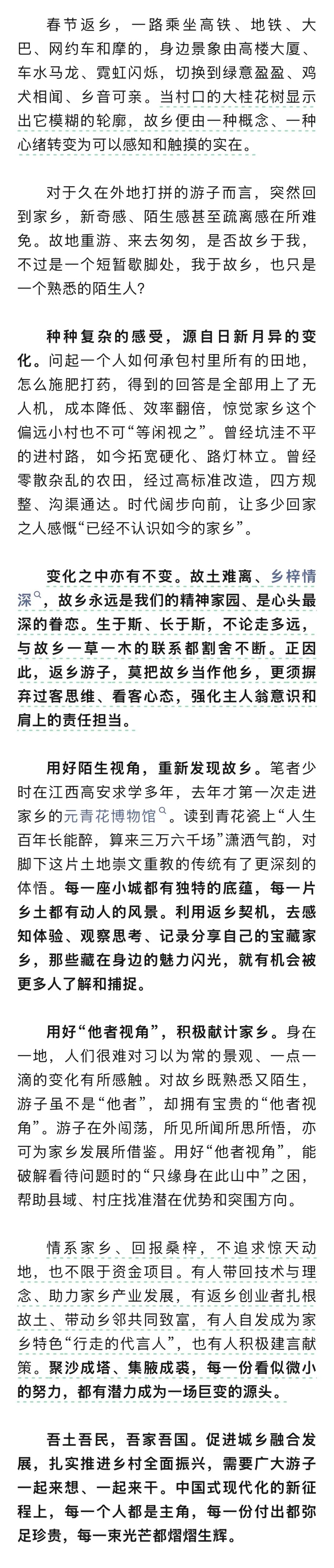 “人民日报评论”微信公众号2月22日刊发文章《返乡游子,莫把故乡作他乡》。