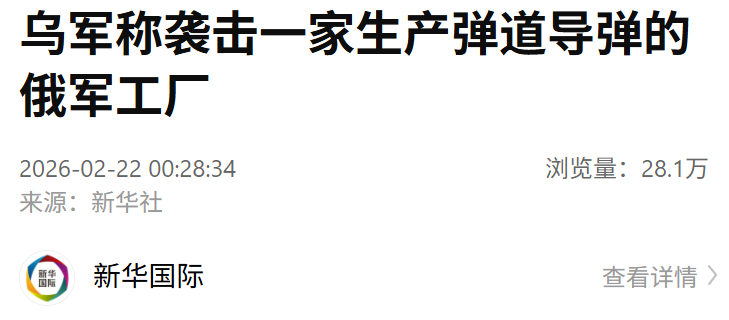 乌克兰武装部队总参谋部21日在社交媒体发布通报说,过去一夜,乌军导弹部队和炮兵使用多枚“火烈鸟”巡航导弹对俄罗斯中部乌德穆尔特共和国沃特金斯克市一家军工厂发动袭击,造成该工厂起火。