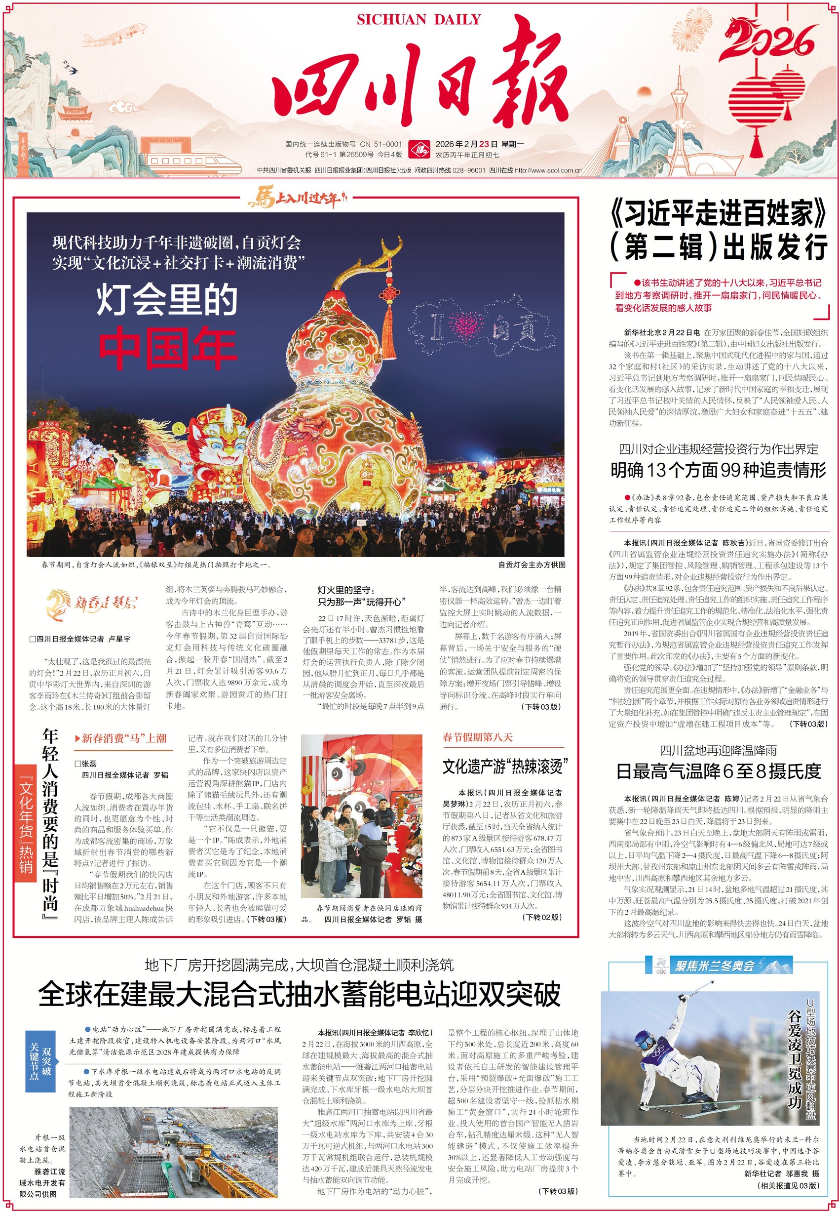 2月22日,在海拔3000米的川西高原,全球在建规模最大、海拔最高的混合式抽水蓄能电站——雅砻江两河口抽蓄电站迎来关键节点双突破:地下厂房开挖圆满完成、下水库牙根一级水电站大坝首仓混凝土顺利浇筑。该电站建成后兼具天然径流发电与抽水蓄能双向调节功能。想了解电站更多详情,请关注今天一版。