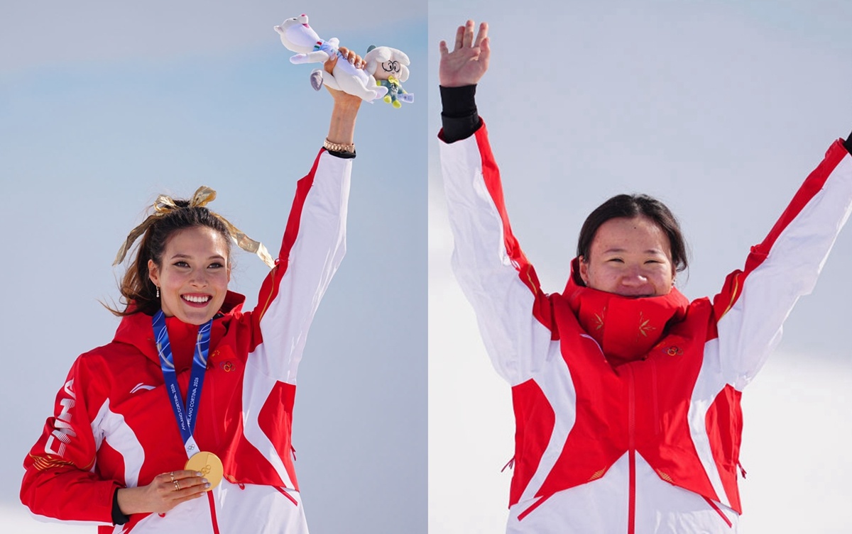 中国选手谷爱凌、李方慧包揽冠亚军。图据新华社