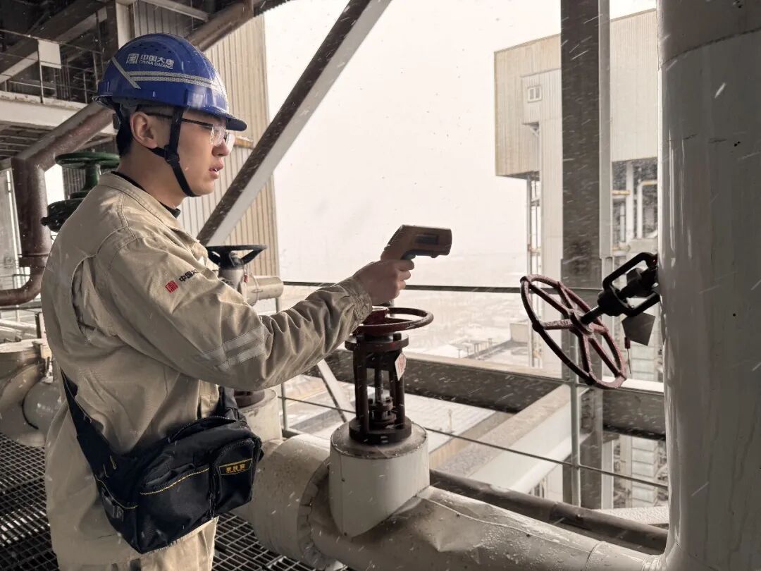 如果说电力交易是保障电力供应与效益的“隐形战场”,那么稳定运转的热电机组,就是电力保供最坚实的压舱石。在厂区的生产一线,维护部锅炉班的梁福军,刚结束了当天全区域设备巡检,深蓝色工装的袖口还沾着些许灰尘,这已是他在春节岗位上坚守的第10个年头。