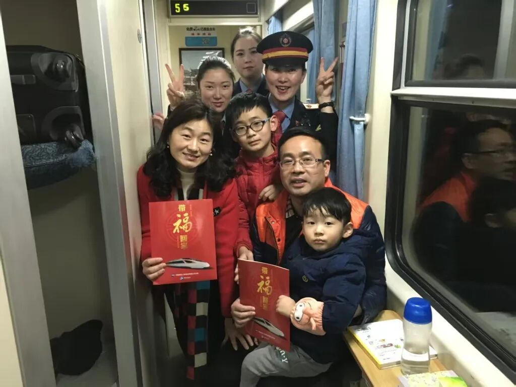 2018年的春运期间,李喆在列车上与旅客合影留念。