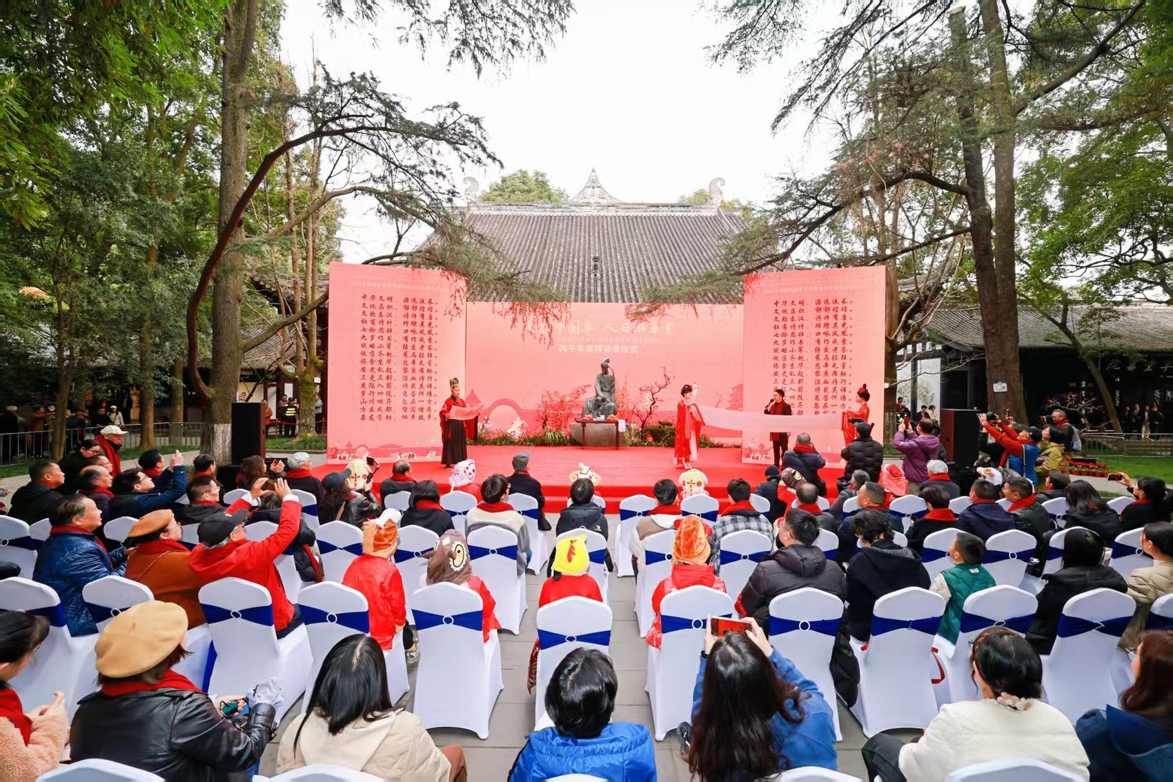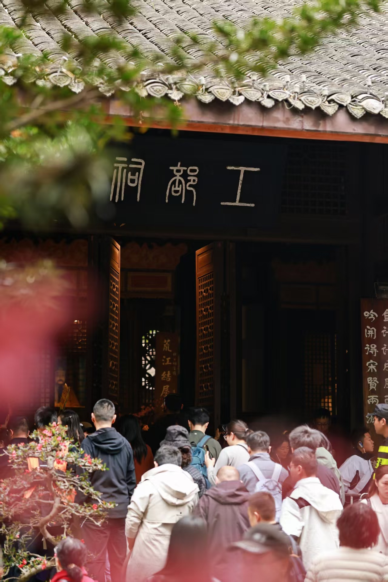 “锦水春风公占却,草堂人日我归来。”100多年前,清咸丰年间的四川学政何绍基在正月初七赴草堂题下这句名联,自此开启文人雅士“人日云集草堂”之先河。2月23日,今年的农历正月初七,上万游客涌入成都杜甫草堂博物馆,开启了“人日游草堂”的春节文化压轴大戏。上午,持续了30多年的“人日游草堂”祭拜诗圣仪式也在成都杜甫草堂博物馆大雅堂前广场举行,以一场兼具古典仪式与时代新意的文化盛典,完成了对诗圣杜甫跨越千载的精神致敬。