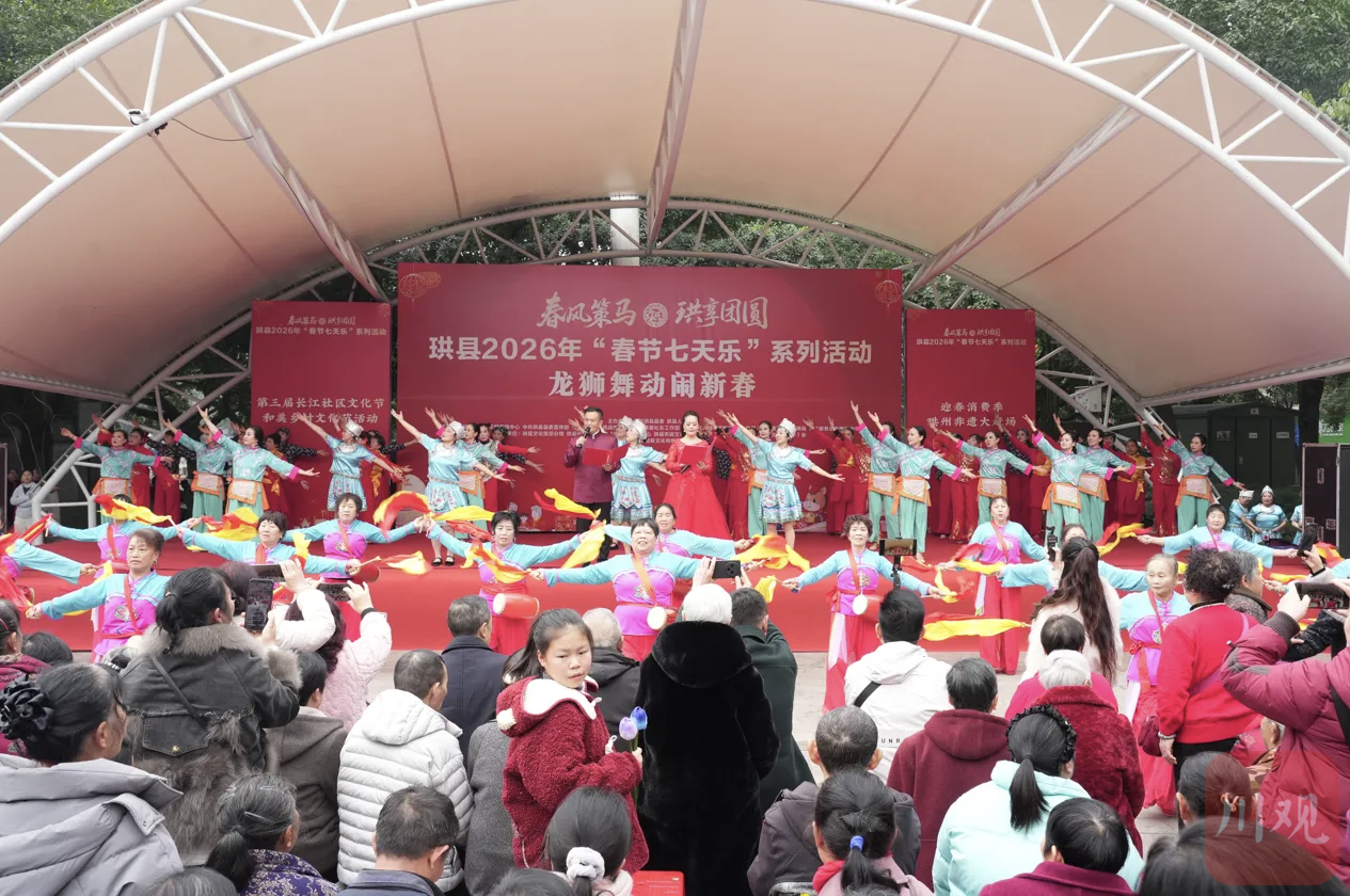 龙狮欢腾,锣鼓喧天,戏韵悠长,歌舞翩跹……2026年农历马年新春,宜宾市珙县街头巷尾洋溢着浓浓的喜庆氛围。正月初一至初七,以“春风策马·珙享团圆”为主题的珙县2026年“春节七天乐”系列文化活动精彩上演,为群众奉上一场连续不断、精彩纷呈的文化盛宴。