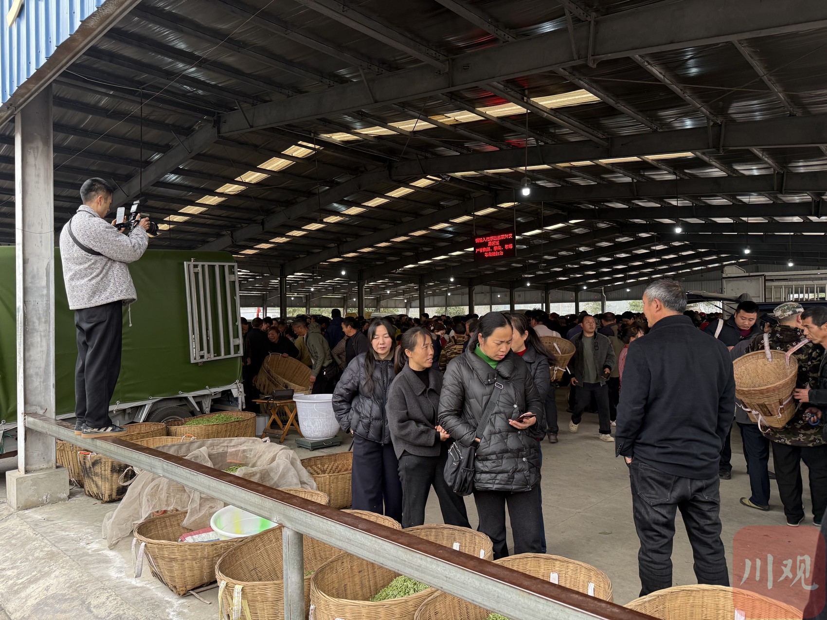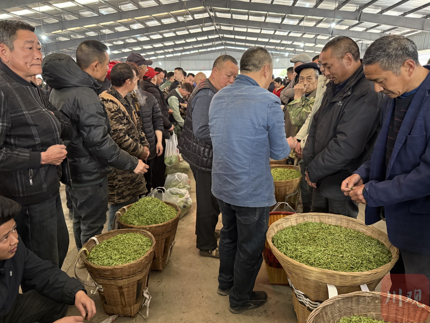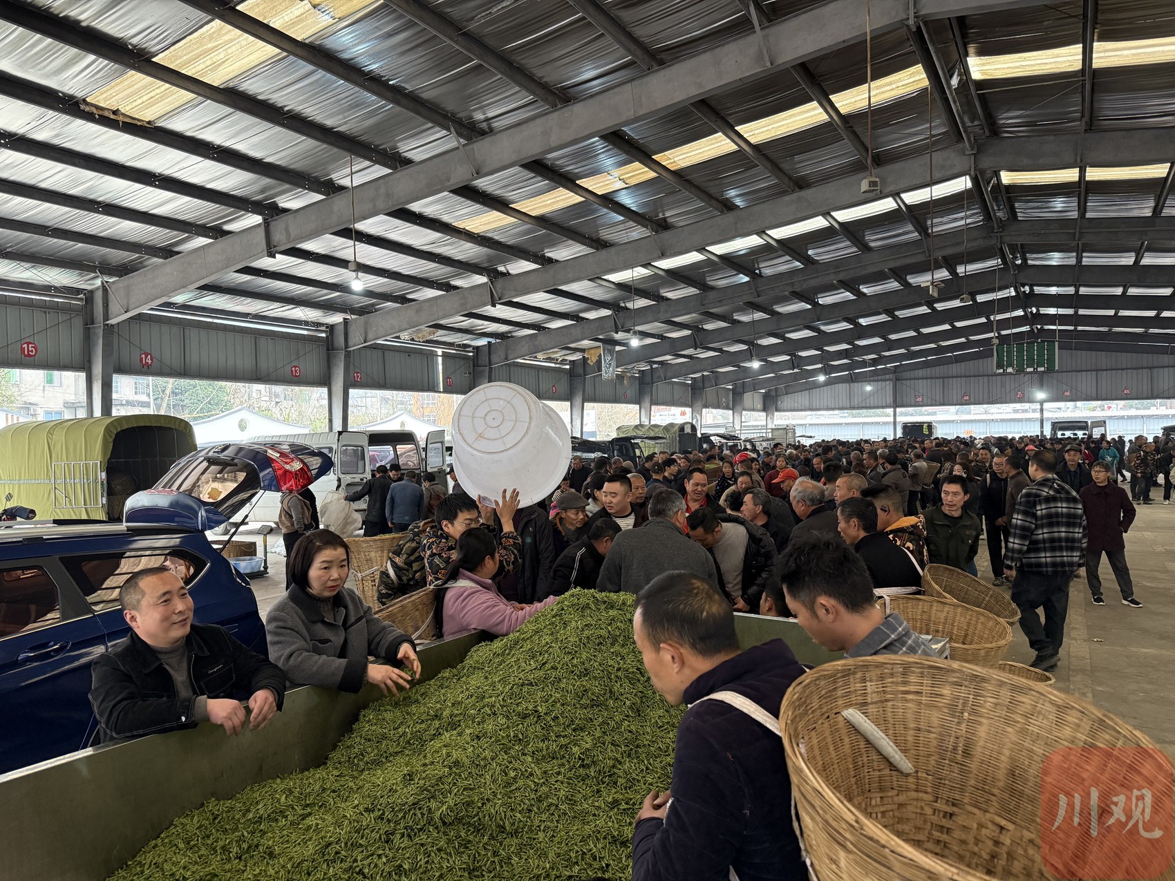 “扬子江心水,蒙山顶上茶”,茶是雅安最具历史文化底蕴的名片之一。作为产业上游的重要一环,双河茶叶鲜叶交易市场是西南地区最大的鲜叶交易市场之一。名山区红星镇双河村党委书记倪元剑介绍,除红星镇外,周边百丈、黑竹、茅河乃至眉山市丹棱县等地茶农也在这里进行鲜叶交易。
