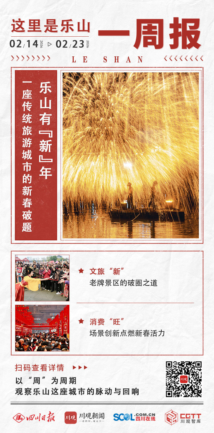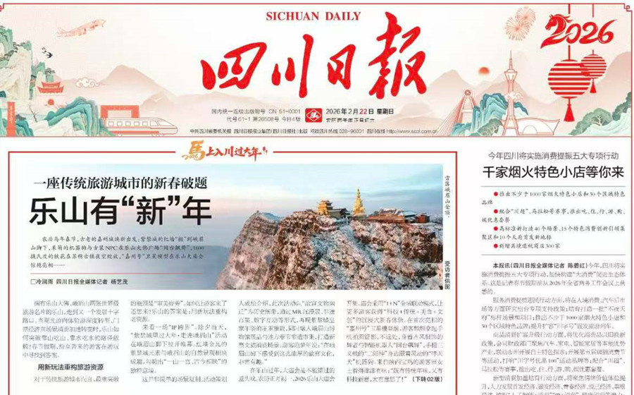 这一周,乐山的关键词是“破圈”。一座老牌旅游城市,如何让“山还是那座山,佛还是那座佛”的风景常看常新?当“观光游”向“体验游”深度转型,乐山用自己的智慧,把传统的年味酿出了新意,把日子过得热气腾腾。2月22日,《四川日报》头版头条以《一座传统旅游城市的新春破题: 乐山有“新”年》为题深度报道。