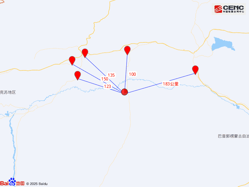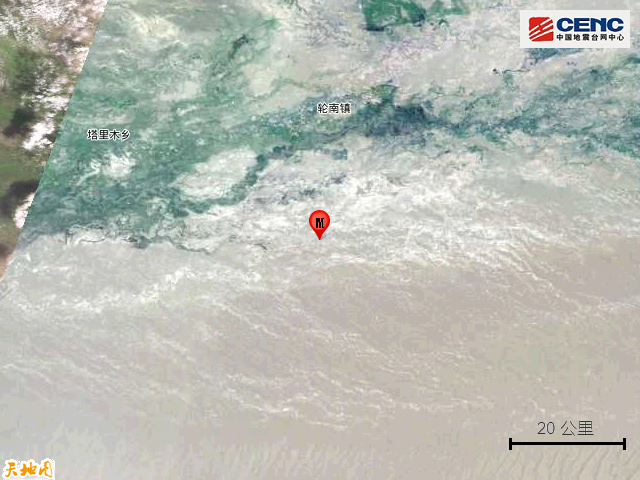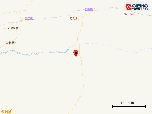 周边县城:震中距轮台县100公里、距沙雅县123公里、距库车市135公里、距新和县150公里、距尉犁县183公里,距铁门关市166公里,距乌鲁木齐市432公里。