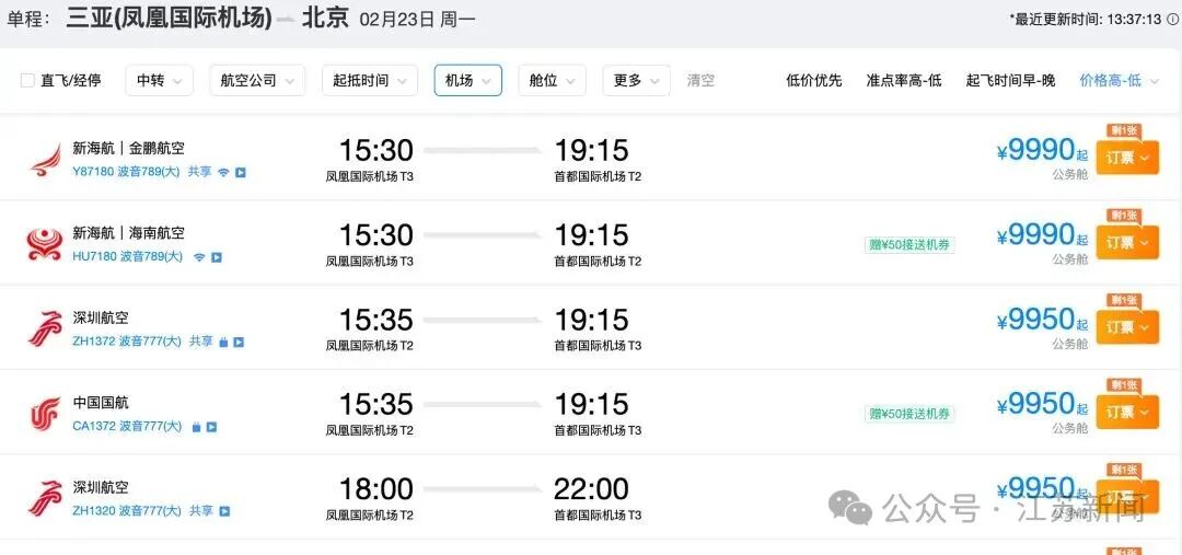 面对“天价机票”,航司方面也给出了回应。根据“海口发布”消息,海南航空工作人员表示,春运期间机票价格受市场供需关系影响出现波动,属于正常现象。所有国内航班经济舱票价均严格按备案价格体系执行。“我们通过内部系统实时监控票价波动,确保春运期间票价处于合理区间。”