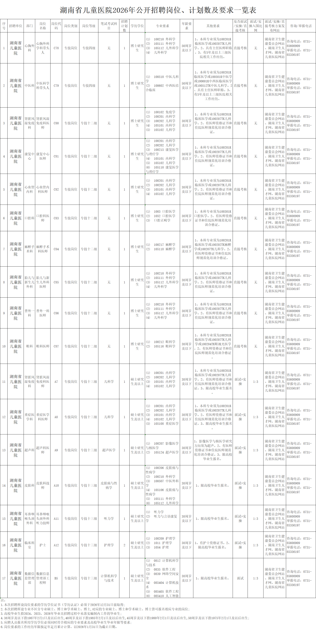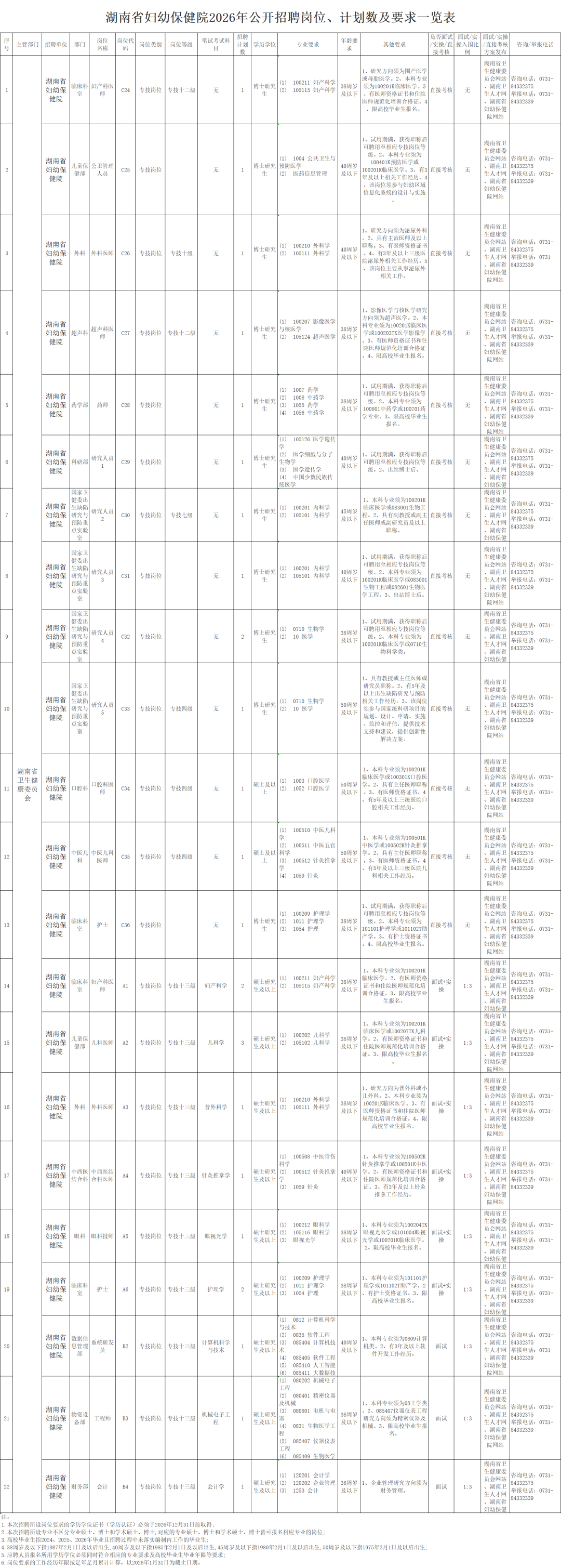 报名时间 2026年2月14日-2月28日报名方式 应聘人员登录湖南医药发展投资集团有限公司网站进行报名。湖南省妇幼保健院2026年公开招聘公告招聘岗位