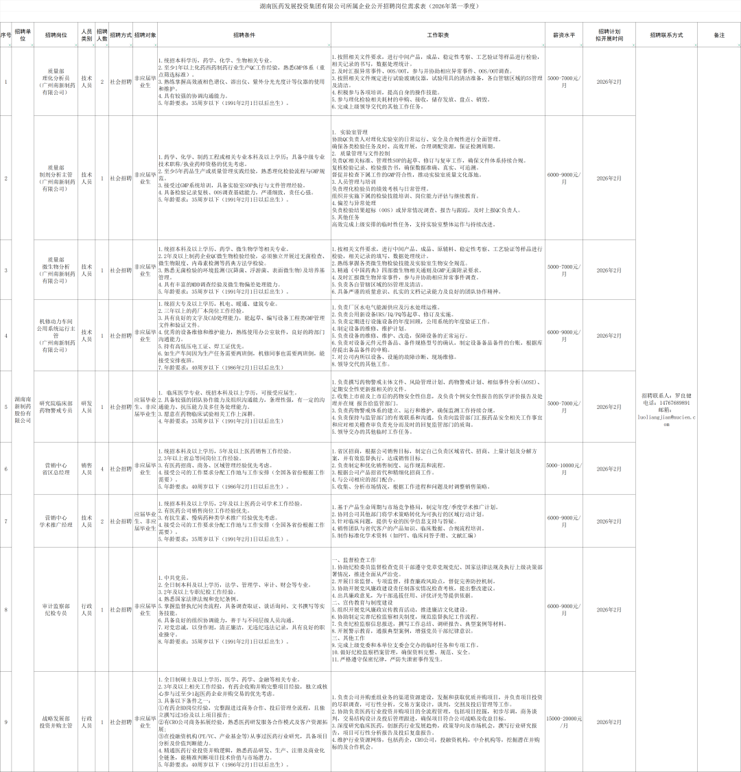 报名时间 2026年2月26日至2026年3月18日报名方式 应聘人员登录湖南卫生人才网招聘报名系统进行报名。湖南医药发展投资集团有限公司所属企业公开招聘公告 (2026年第一季度)招聘岗位