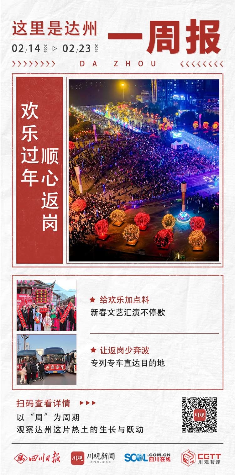 在达州万源市,2月20日至21日,正月初四至初五,当地举行“百姓舞台·万家欢歌”文化惠民巡回展演。作为万源市“新春走基层・文化进万家”系列活动的重要一环,展演准备了舞蹈、歌曲、乐器独奏、小品等精彩节目,把幸福与温暖传递给更多人。