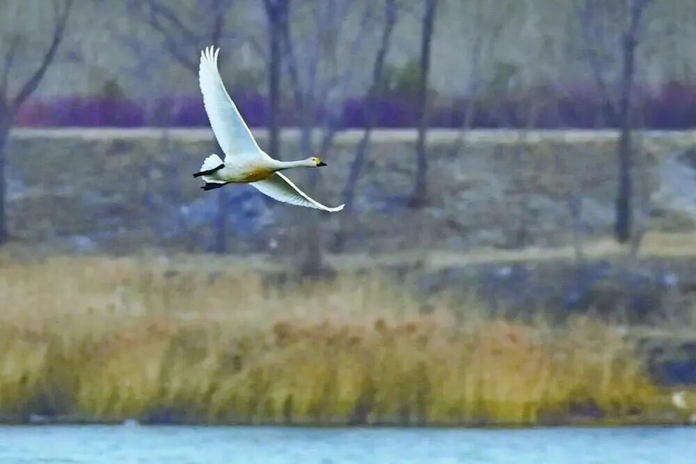 在石家庄市滹沱河,数十只小天鹅在水中或静静游弋、或引吭高歌、或振翅飞翔。详情→