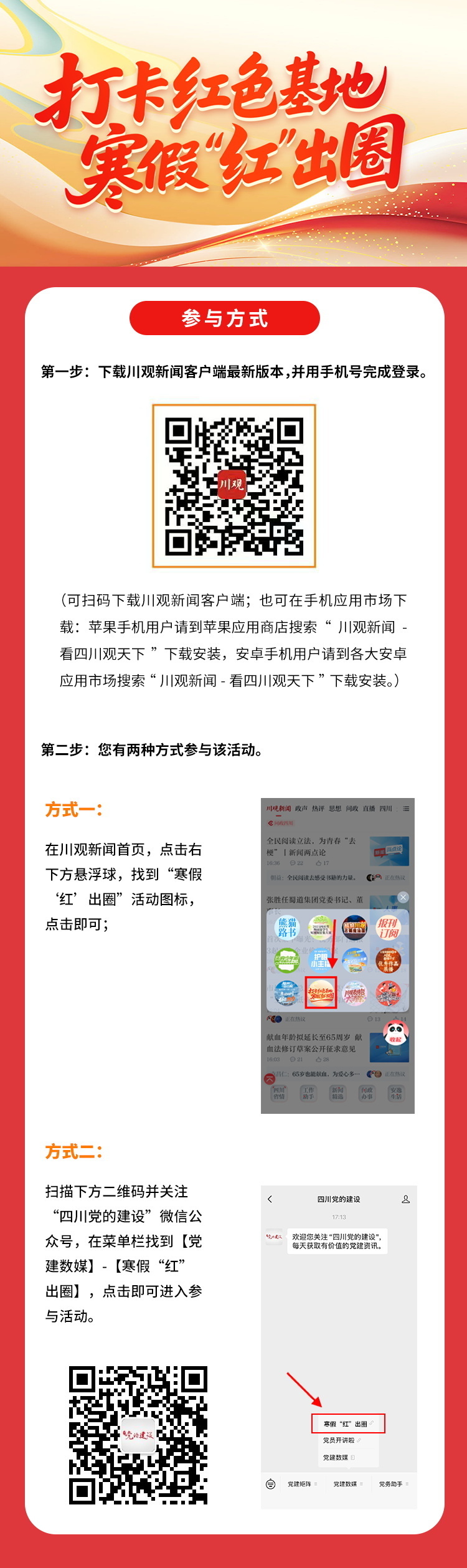 自“打卡红色基地,寒假‘红’出圈”活动启动以来,我们收获了如潮的热情!十余天时间里,全省各地中小学生在巴蜀大地上绘出了一道道亮丽的“红色风景线”。