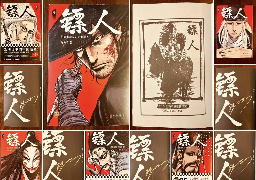 它先在日本火了。日本双叶社(《蜡笔小新》出版社)前主编栗原一二,初见《镖人》便被击中,主动飞到中国,要求担任这部漫画的责任编辑。他评价许先哲“对作品已进入‘痴’的状态”。