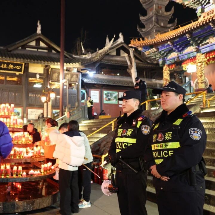 除夕夜的广德寺,香火是年味,藏蓝是平安。在万家团圆的新春佳节,遂宁经开公安用责任与担当书写平安答卷,用默默守护温暖这座城市的每一个团圆夜。